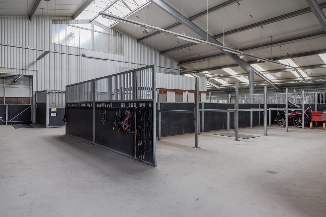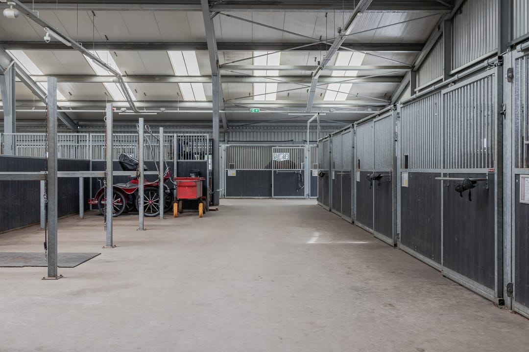 Binnen bevinden zich twee ruime rijbanen welke zijn voorzien van de topsport bodem van Equisport en kunststof hoefslagkering. Door de lichtnokken is er overdag uitstekende daglichtvoorziening. Ook 's avond zijn de rijbanen goed verlicht middels ledverlichting. De boxen zijn voorzien van ruime (wegdraaiende-) voorwanden ten behoeve van gebruiksgemak. Door voldoende hoogte is in het gehele complex sprake van optimale ventilatie.