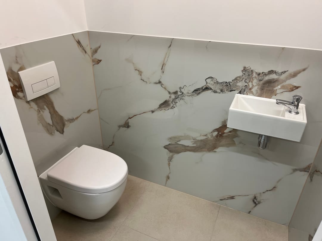 • toiletruimte voorzien van fonteintje en tegelwerk.