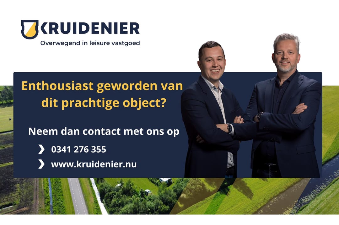 Deze informatie is geheel vrijblijvend, uitsluitend bestemd voor geadresseerde en niet bedoeld als een aanbod. Ten aanzien van de juistheid kan door Kruidenier Recreatie Bedrijfsmakelaardij B.V. geen aansprakelijkheid worden aanvaard, noch kan aan de vermelde informatie enig recht worden ontleend. Alle opgegeven aantallen, maten en oppervlakten zijn indicatief.