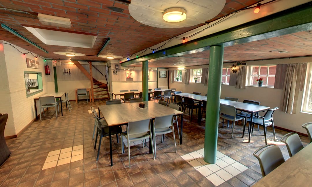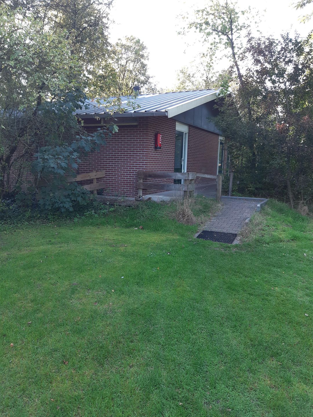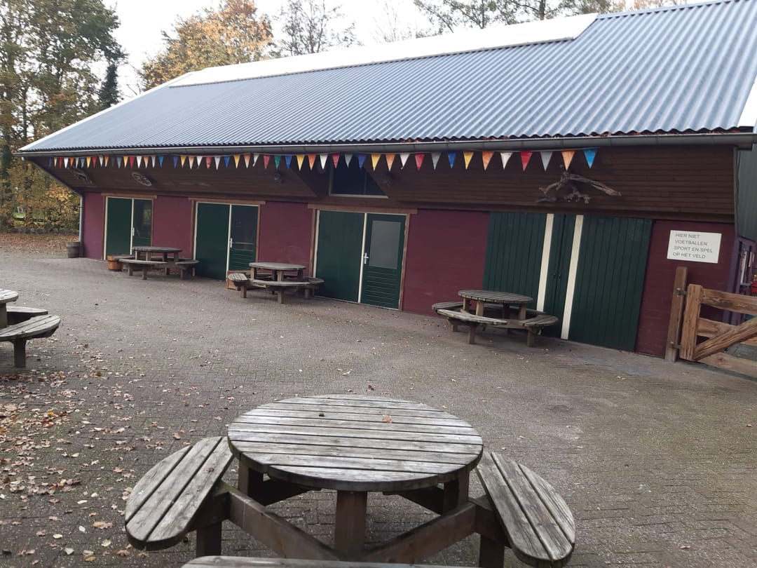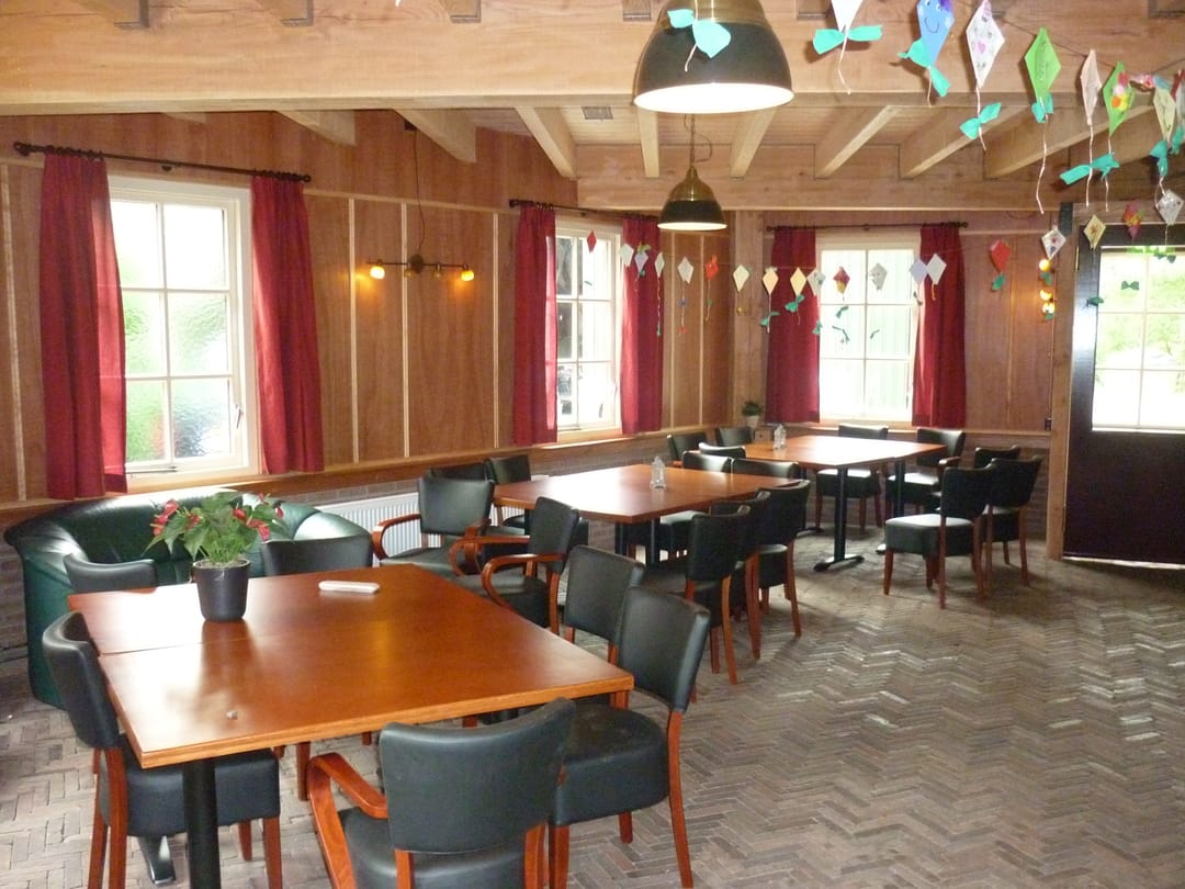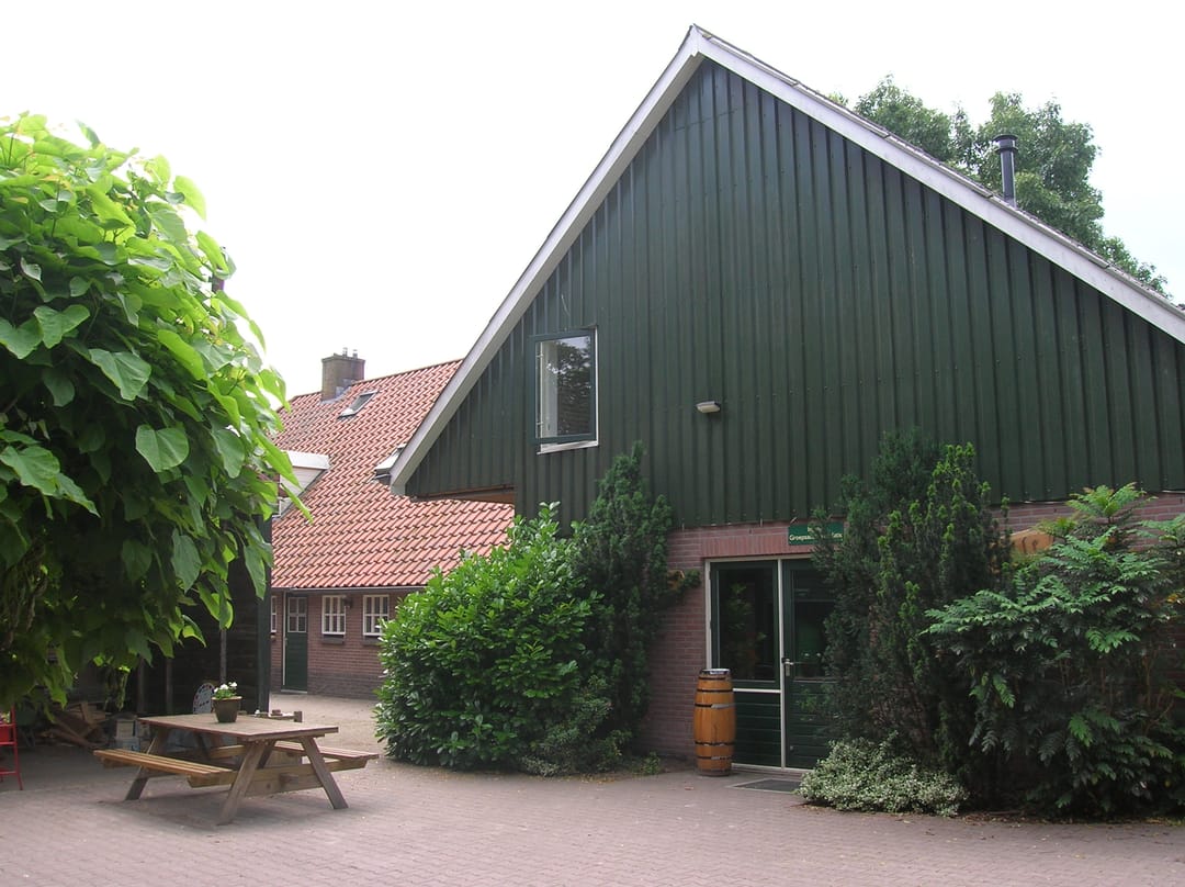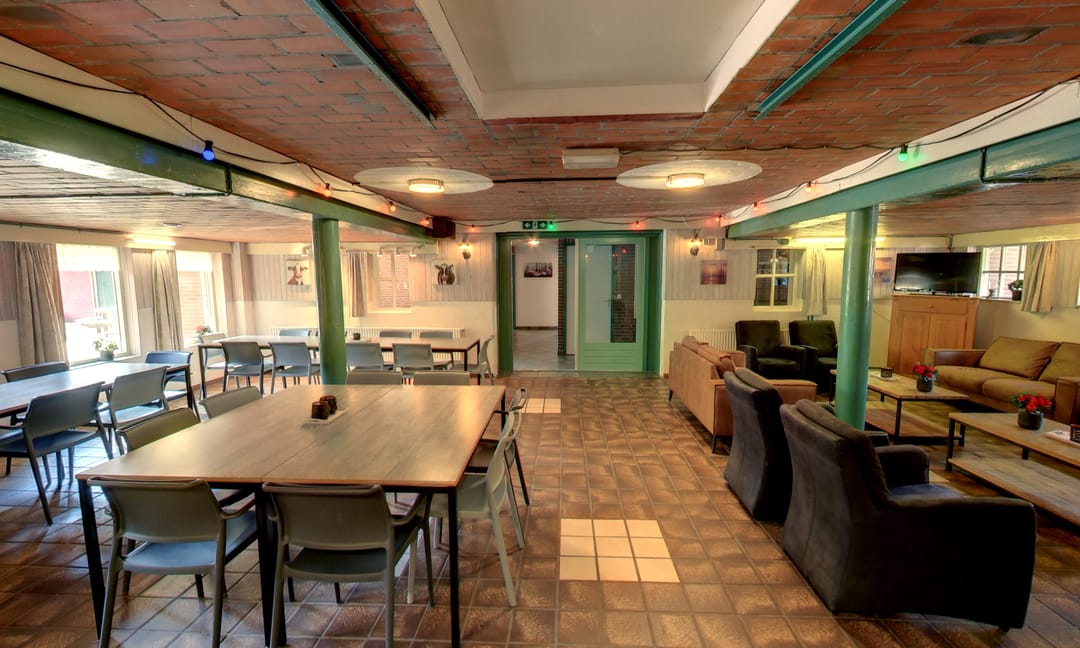 Aan de voorzijde van het terrein is de ruime groepsaccommodatie gevestigd.