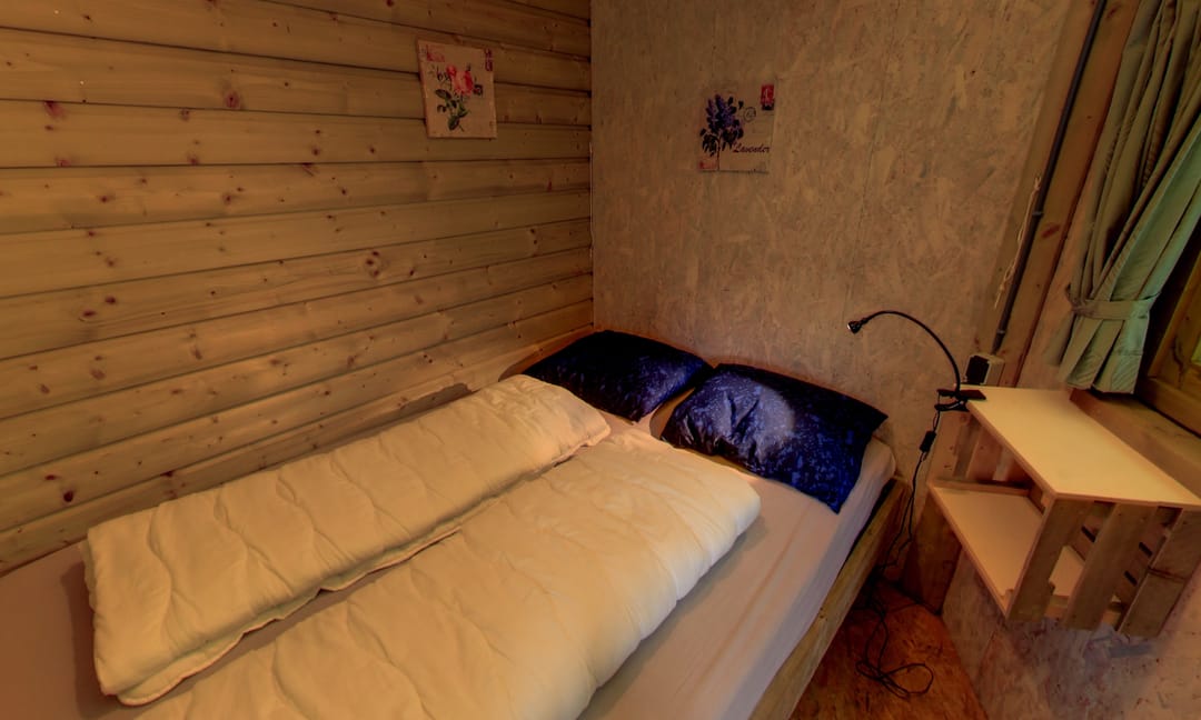 Op het grote veld is een Slingerland tent voor de verhuur gerealiseerd. Deze uit hout opgebouwde trekkershut is voorzien van een tentdak, gelijkvloers en biedt dankzij de ruime oppervlakte mogelijkheid tot een verblijfscapaciteit van 5 personen.