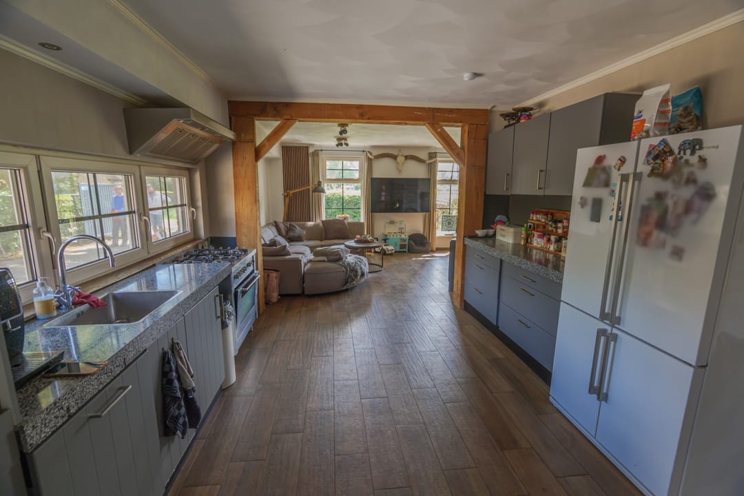 Voorop het terrein is een vrijstaande bedrijfswoning gevestigd. De woning met een oppervlakte van circa 155 m² is opgetrokken met stenen muren en het dak is bedekt met een rieten kap welke recent geheel onderhouden is. De bedrijfswoning verkeert ten opzichte van het oorspronkelijke bouwjaar 1979 in een uitstekende staat en beschikt over energielabel C. De indeling bestaat uit een entree met een hal die doorgang geeft tot de keuken, welke voorzien is van een keukenblok met gasfornuis, oven en magnetron. De keuken geeft een directe toegang tot de aangrenzende woonkamer. Er is een aparte ruimte die momenteel functioneert als opslagkamer. Verder is er een badkamer voorzien van douche, ligbad en wastafel, en een separaat toilet. de trapopgang naar de eerste verdieping komt uit op een overloop welke in verbinding staat met twee ruime slaapkamers en een separaat toilet.