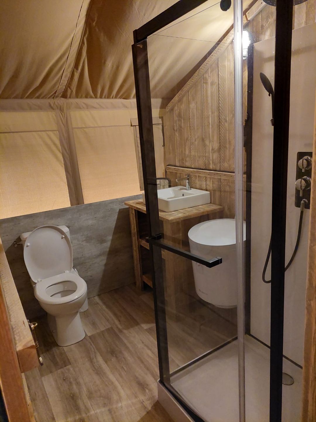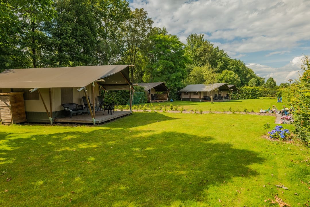 1 safaritent zonder sanitair en 1 safaritent met enkel toilet huurt de camping, de overige safaritenten zijn in eigendom.