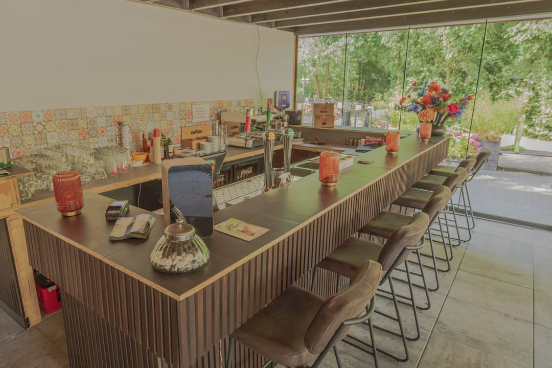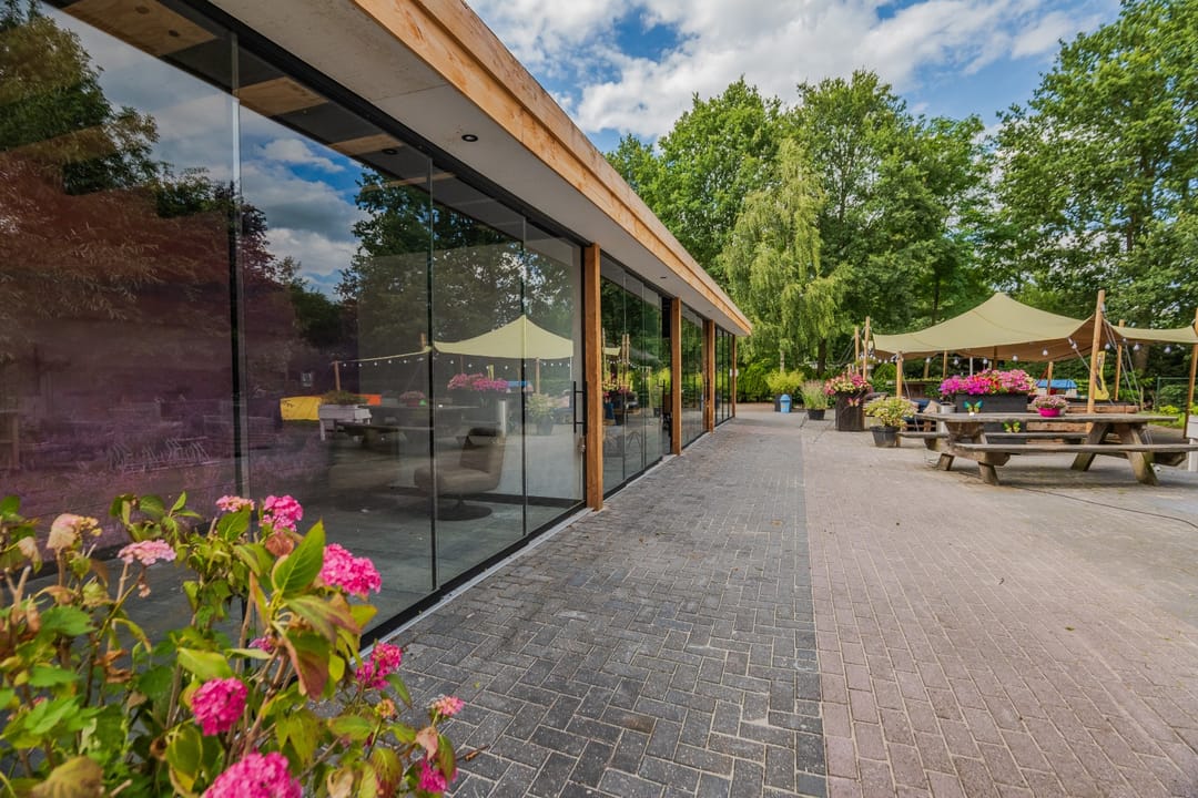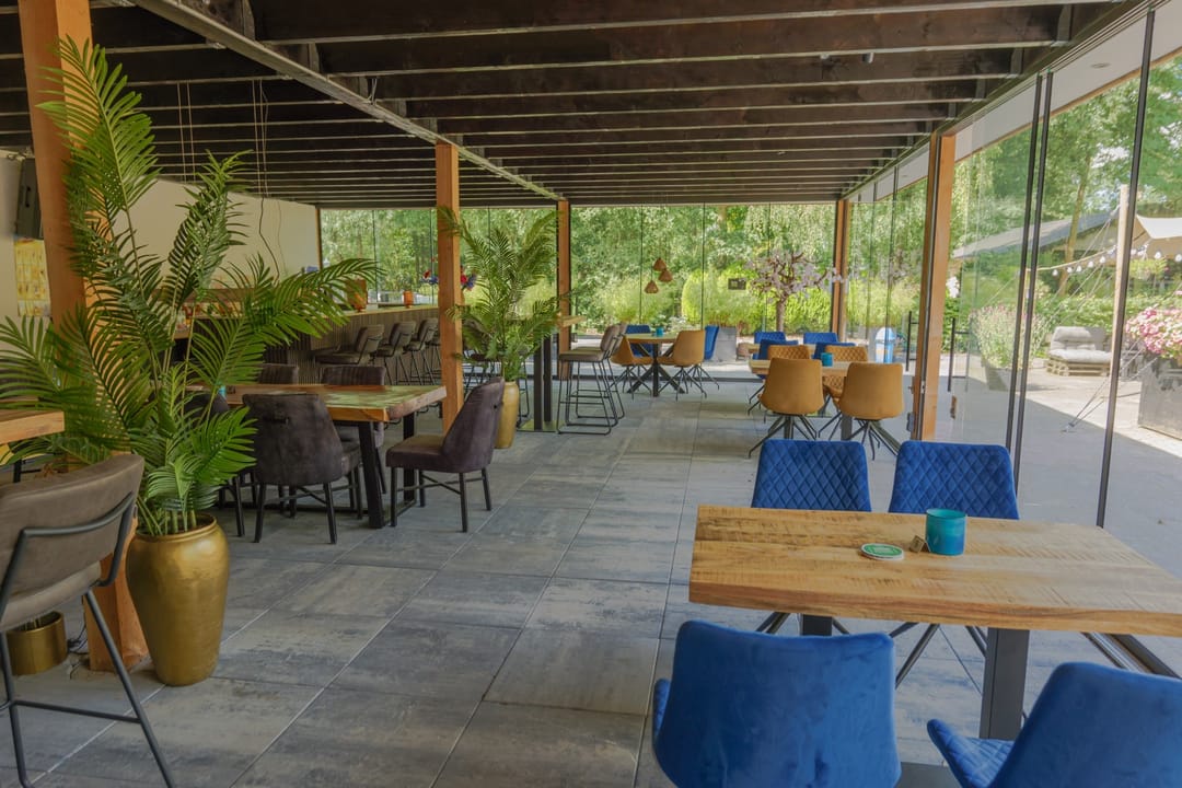 Bij de entree van het terrein bevindt zich een nieuw gerealiseerd horeca- en receptiegebouw. De horecaruimte beschikt over een ruim terras dat is voorzien van glazen wanden, waardoor het afsluitbaar is en het hele jaar door optimaal benut kan worden, ook bij minder gunstige weersomstandigheden. Het gebouw is ingericht met een professionele keuken, sfeervolle diningroom met aangrenzend terras, een bar, loungehoek en praktische opslagruimtes.