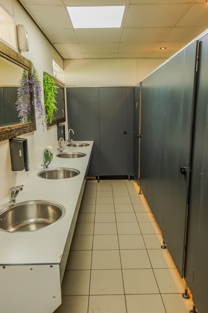 Ter behoeve van de camping is er nabij de entree een verwarmd sanitairgebouw geplaatst welke is voorzien van warm water, douches, toiletten, wasplaatsen, een speciale babyruimte en afwasmogelijkheden. De kosten voor het gebruik van het sanitair zit in de nachtprijs inbegrepen.