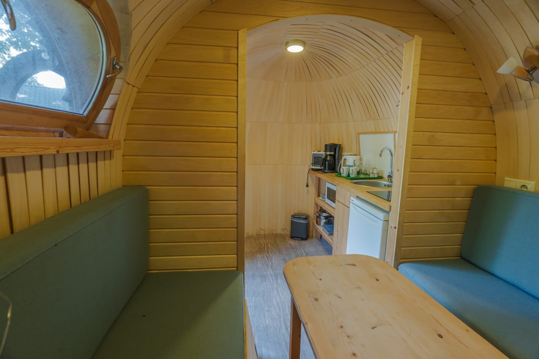 De trekkerslodge betreft een zogeheten Iglu trekkershut in de bouwstijl van een traditionele Noorse Iglo, welke capaciteit biedt voor 2 personen. De hut is compleet gemaakt van hout, goed geïsoleerd en is voorzien van een gemeubileerde keuken en een comfortabele zithoek welke kan worden aangepast naar een bed.