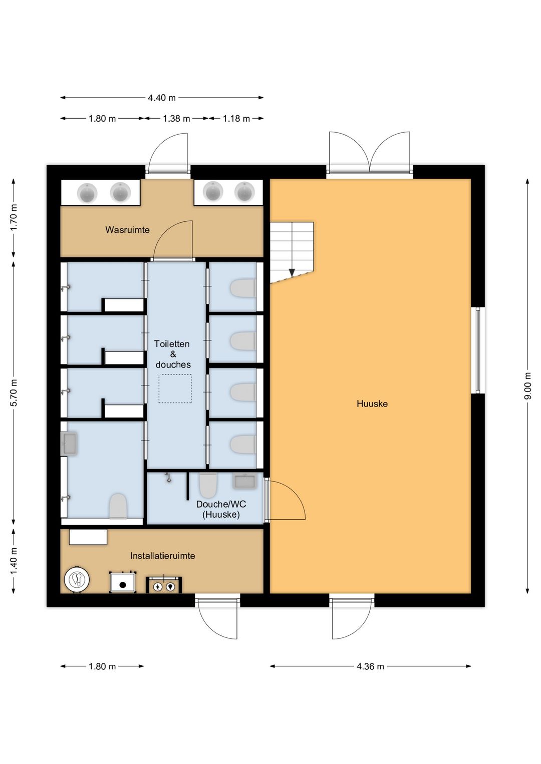 • Twee bijgebouwen met o.a. receptie, recreatieruimte en sanitaire voorzieningen