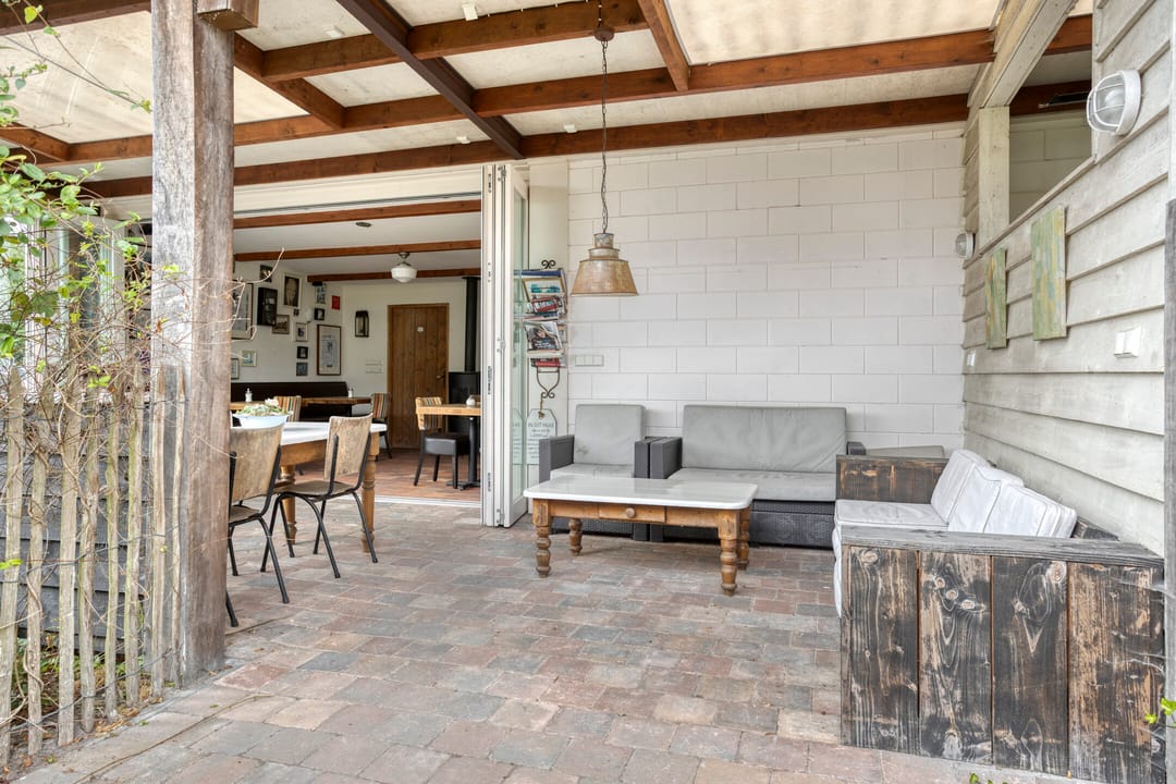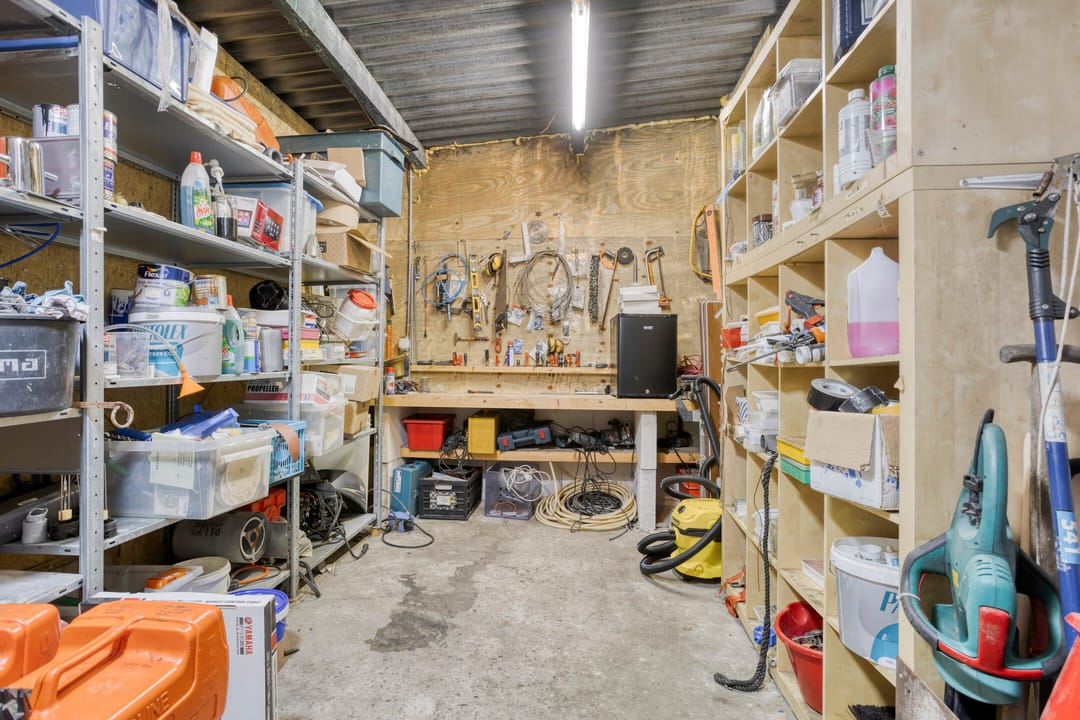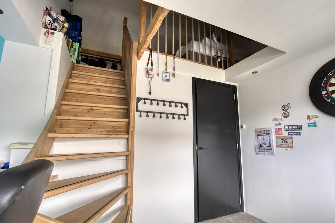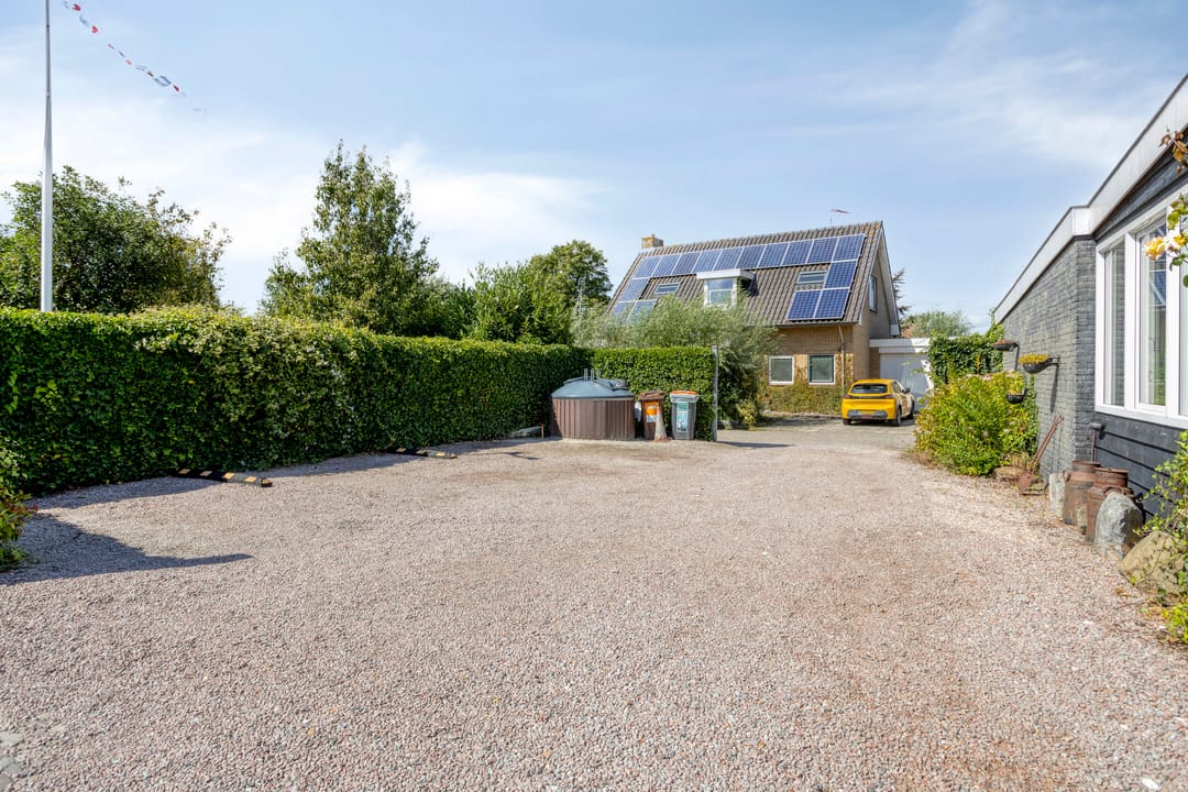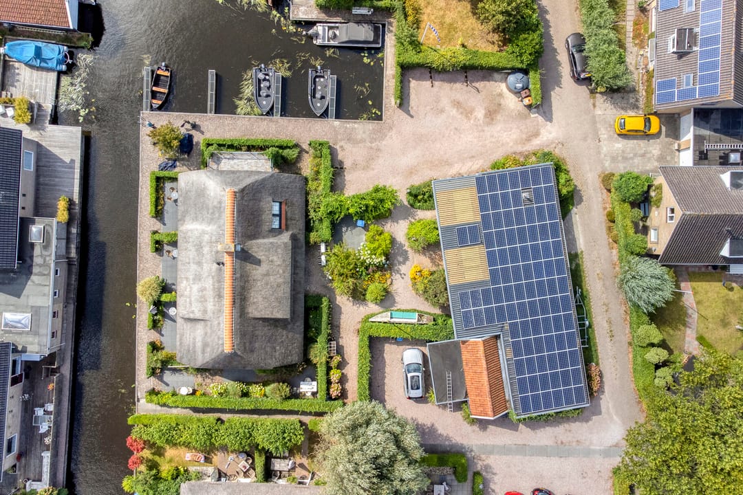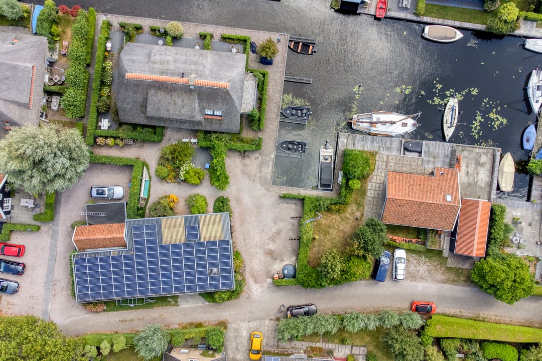 In het bijgebouw is een ruime dubbels garage voorzien van laadpaal voor elektrische auto. Op de garage zijn 93 zonnepanelen aangebracht.