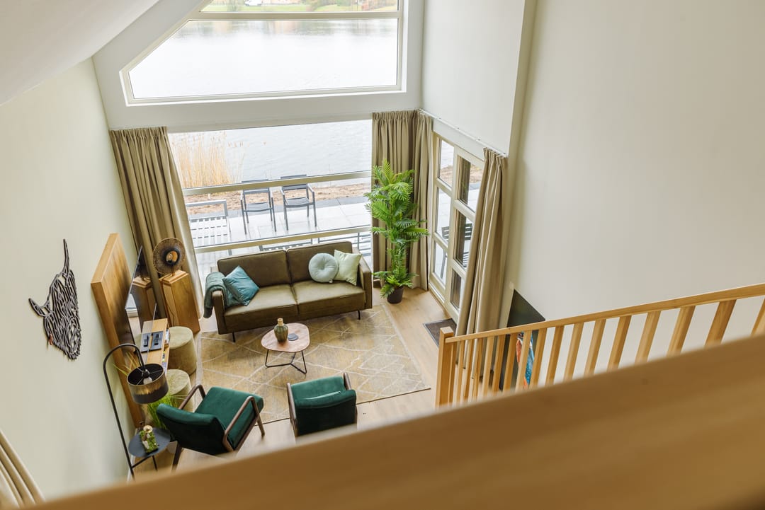 Binnen wacht een royale en lichte woonkamer met grote raampartijen, een speelse indeling en een moderne open keuken. Hier geniet u dagelijks van het weidse uitzicht over het water en de natuur. De begane grond biedt twee comfortabele slaapkamers en een stijlvolle badkamer. De verdieping beschikt over een royale overloop, een derde slaapkamer en een tweede badkamer. Ideaal voor gasten of een groter gezin. Ook op het gebied van duurzaamheid is dit een toekomstbestendige investering: uitstekende isolatie (gemiddelde RC-waarde 6.2) en onderhoudsarme Keralit gevelbekleding zorgen voor zorgeloos woongenot. Buiten vormt de tuin aan het water een oase van rust en ontspanning.