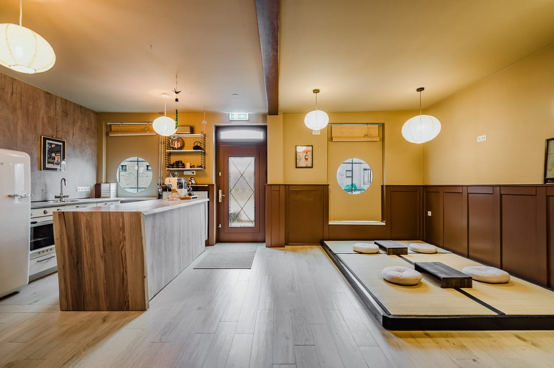 Momenteel in gebruik als een charmant pop-up Japans Theehuis (Chaya Maiko). De ruimte beschikt over veel potentie en is onder andere zeer geschikt als leefkeuken met woonkamer en tevens voorbereid voor het realiseren van een slaapkamer met badkamer ensuite. Thans beschikt de sanitaire ruimte over een wastafel en 2 toiletten, de voorzieningen zijn echter ook aangelegd voor het realiseren van een inloopdouche i.p.v. het 2e toilet.