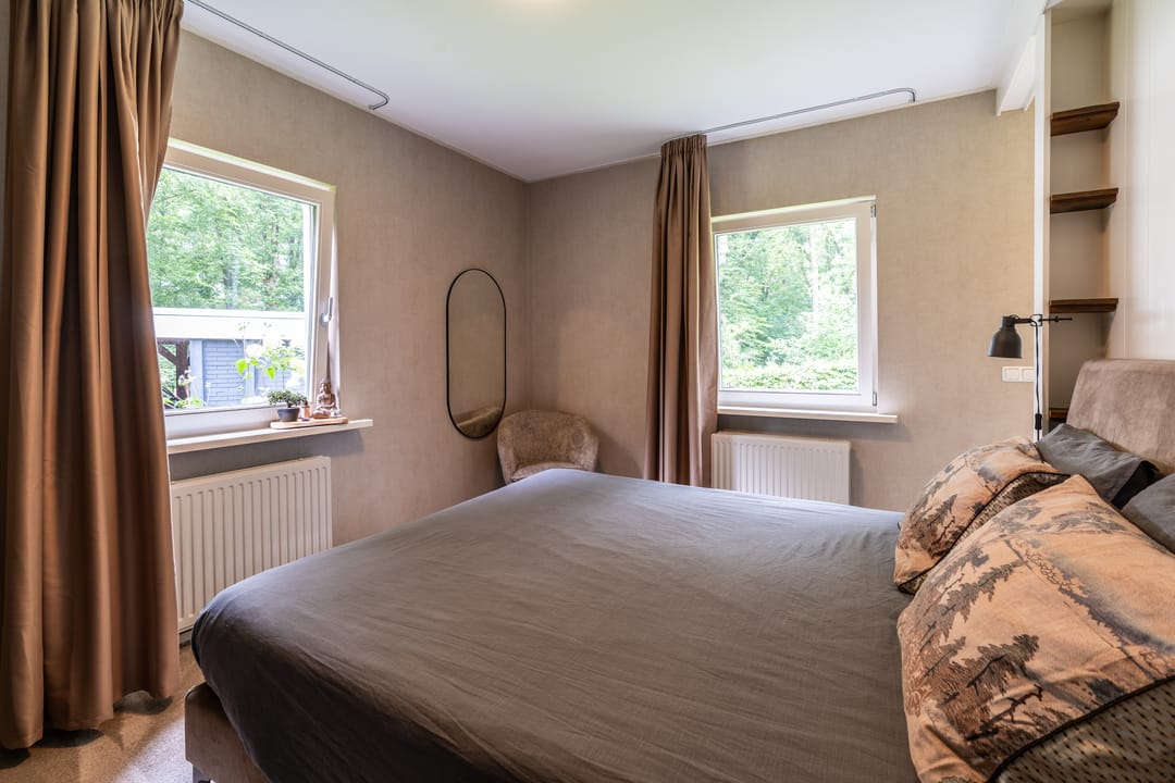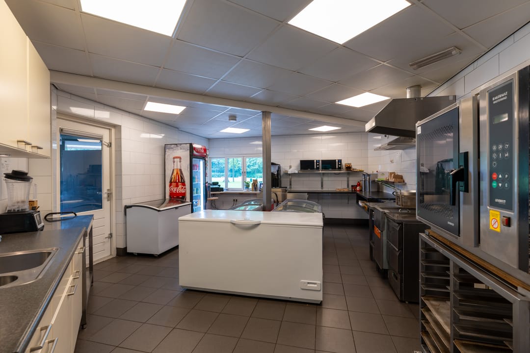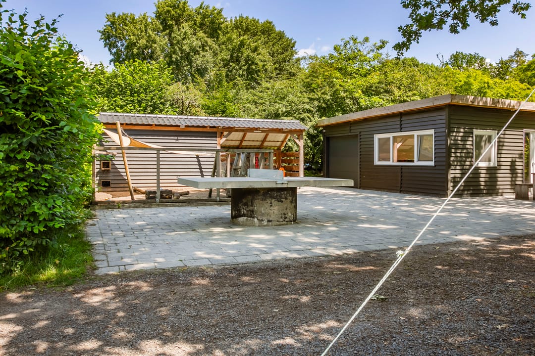 De woning bestaat uit: een ruime entree, een royale woonkamer met open keuken, een separaat toilet met urinoir, een badkamer met inloopdouche, wastafel en toilet, vijf slaapkamers, een bijkeuken/wasruimte en een receptieruimte voor de camping. Tevens zijn er diverse inbouwkasten aanwezig. Aan de achterzijde van de woning bevindt zich een ruime privé tuin. Deze tuin is door middel van een bosstrook afgescheiden van de camping, wat zorgt voor extra privacy. In de tuin is ook een opslagschuur met carport aanwezig voor eigen gebruik.
