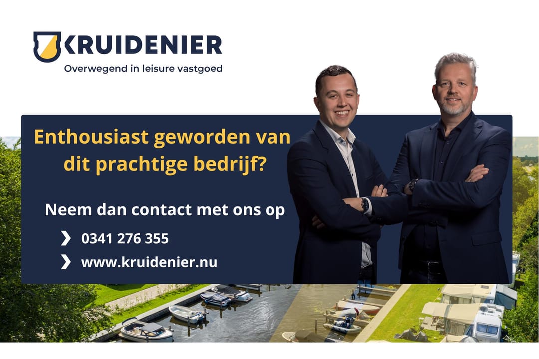 Deze informatie is geheel vrijblijvend, uitsluitend bestemd voor geadresseerde en niet bedoeld als een aanbod. Ten aanzien van de juistheid kan door Kruidenier Recreatie Bedrijfsmakelaardij B.V. geen aansprakelijkheid worden aanvaard, noch kan aan de vermelde informatie enig recht worden ontleend. Alle opgegeven aantallen, maten en oppervlakten zijn indicatief.