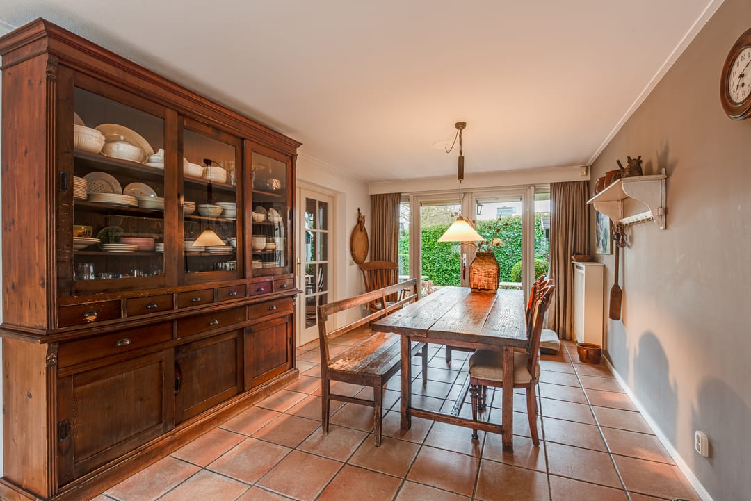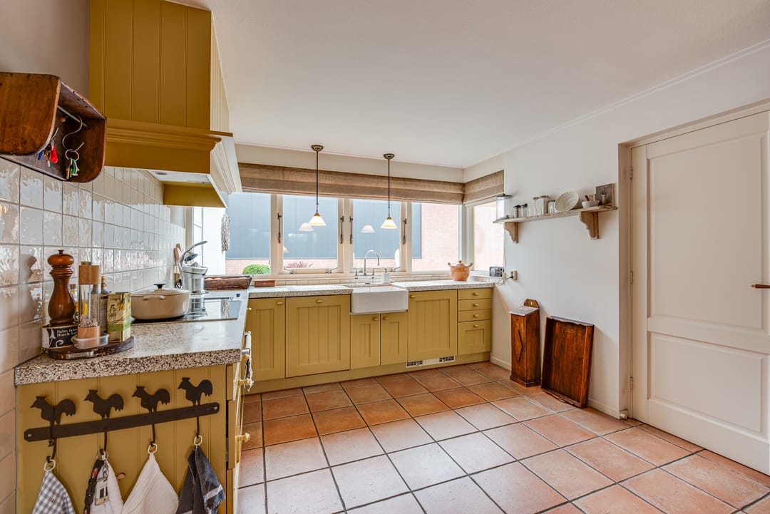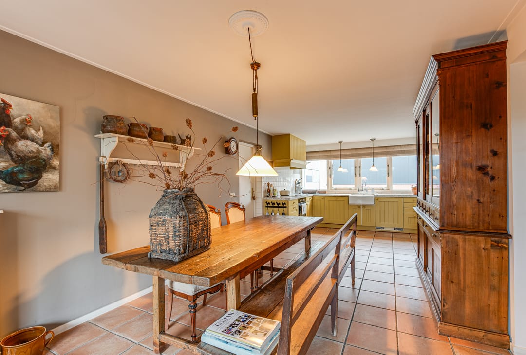 De woonkeuken is van alle gemakken en inbouwapparatuur voorzien en heeft een grote eettafel en openslaande deuren naar een zonnig terras.