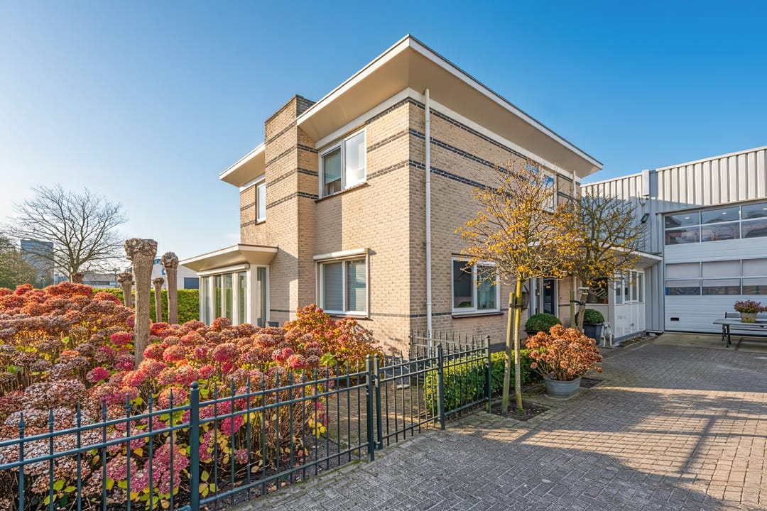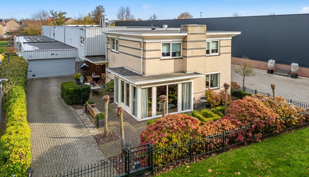 Unieke kans om te wonen in een vrijstaande villa en te werken in de aangrenzende grote bedrijfshal, met diverse kantoorruimtes, garages en opslagruimtes, voorzien van een brug.