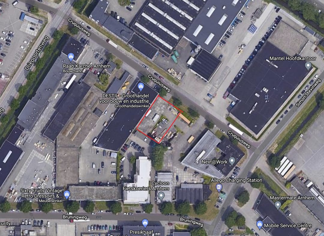 Te huur, bestraat en omheind buitenterrein gelegen aan de Cruquiusweg in Arnhem.