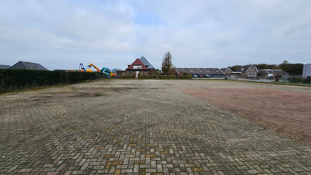De oppervlakte bedraagt ca. 1.900 m² en is geheel verhard met betonklinkers en volledig omheind.