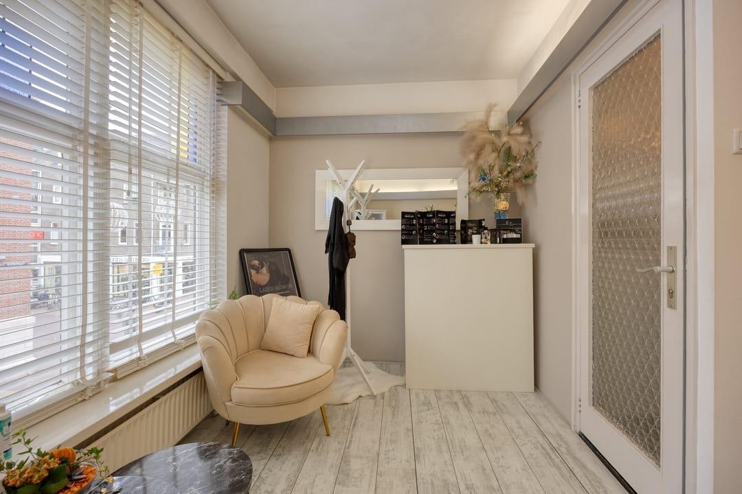 • Op de begane grond bevindt zich de kapsalon/praktijkruimte, uitstekend zichtbaar en perfect gelegen voor een ambacht, praktijk of kleinschalige winkel.