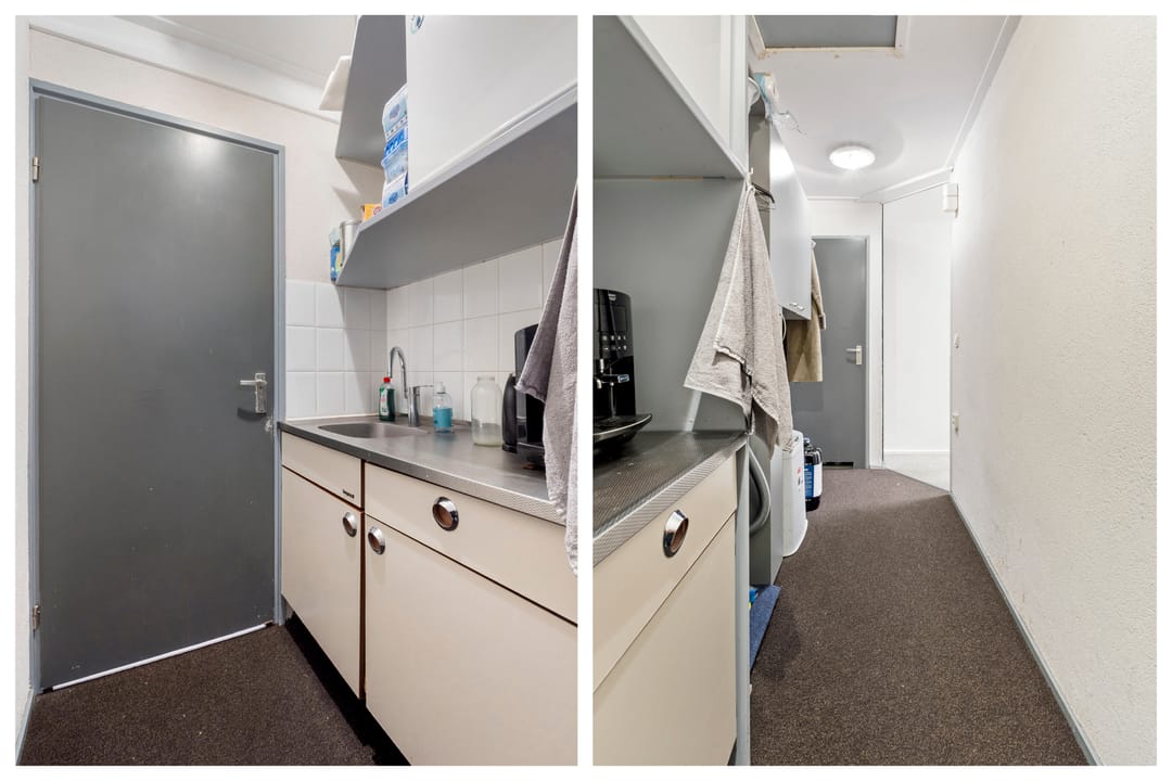 In de huidige staat. De winkel is voorzien vloerbedekking met hieronder een laminaatvloer, systeemplafond met verlichting, grote schuifdeureninbouwkast in het achterkantoor, airco installatie, keukenblokje, boiler, kast naast keukenblokje, aangebouwde bergkast, losse trap, wastafel en spiegel in toilet, buitenreclamebakken en kleine zolderberging.