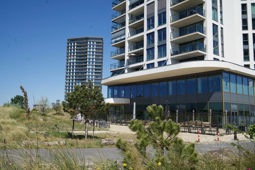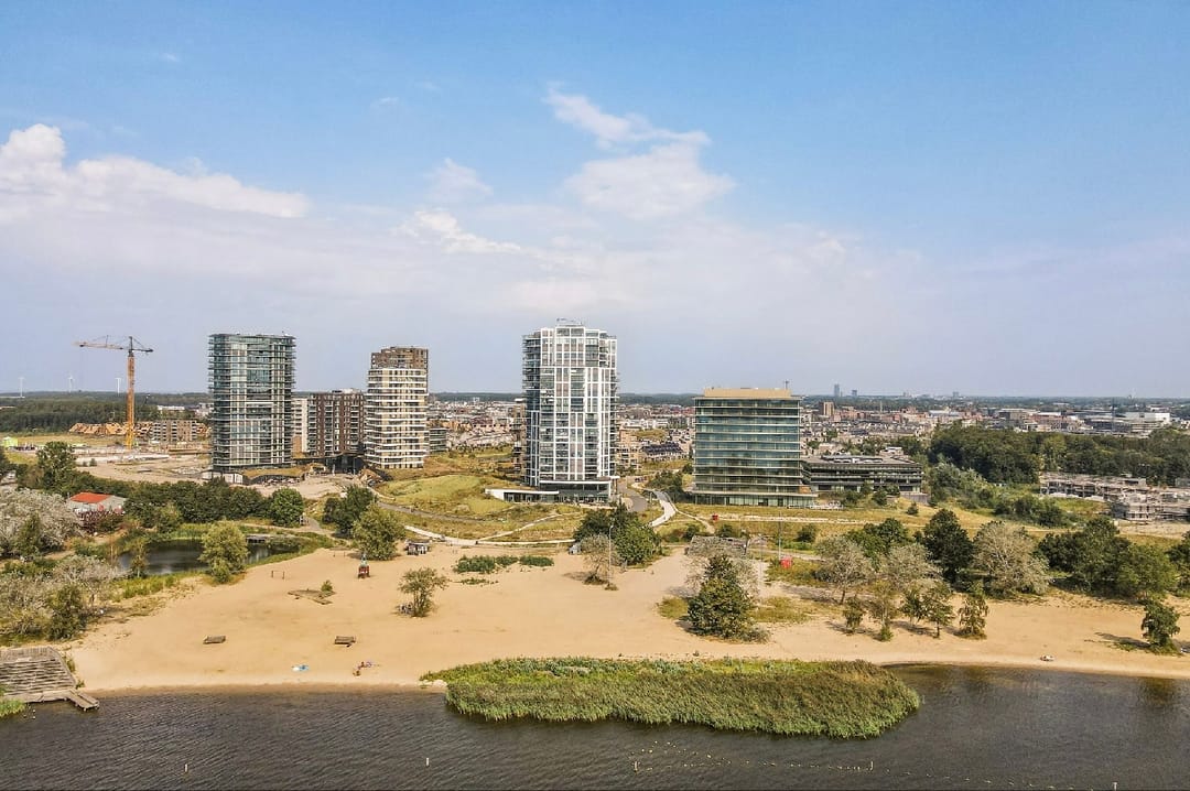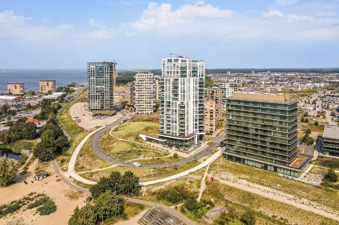 De directe omgeving ontwikkelt zich in hoog tempo tot een levendig stadsdeel met horecagelegenheden, winkels en diverse bedrijvigheid, wat zorgt voor een dynamische en inspirerende werkomgeving. De nabijheid van het strand van Almere Duin maakt deze locatie bovendien een prettige plek om te werken en klanten te ontvangen.