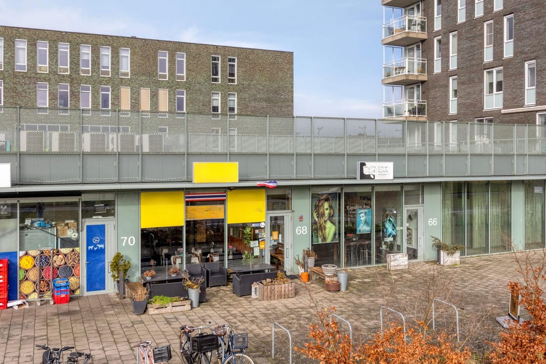 Het appartementsrecht, rechtgevende op het uitsluitend gebruik van de bedrijfsruimte gelegen op de begane grond, gelegen te 1335 JW Almere, Bandastraat 68, kadastraal bekend gemeente Almere, sectie B, complexaanduiding 7465, appartementsindex 50, uitmakende het éénduizend zesenzestig/tweeduizend vierendertigste (1.066/2.034e) onverdeeld aandeel in de gemeenschap bestaande uit het appartementsrecht, rechtgevende op het uitsluitend gebruik van de bedrijfsruimte gelegen op de begane grond, plaatselijk bekend te 1335 JW Almere, Bandastraat 68, kadastraal bekend gemeente Almere, sectie B, nummer 7465-A-6, uitmakende het tweehonderdtwintig/zevenduizend tweehonderdnegenenzeventigste (220/4.279e) onverdeeld aandeel in de gemeenschap bestaande uit het appartementsrecht, rechtgevende op het uitsluitend gebruik van de school annex multifunctionele ruimte gelegen op de begane grond tot en met de derde verdieping van het gebouw, en het dakterras annex schoolplein gelegen op de eerste verdieping van het gebouw, alsmede het schoolplein gelegen op de begane grond, en rechtgevende op het uitsluitend gebruik van zeven (7) bedrijfsruimten en zes (6) parkeerplaatsen alsmede een energiestation, gelegen op de begane grond, plaatselijk bekend Ambonstraat en Bandastraat te Almere, kadastraal bekend gemeente Almere sectie B nummer 7465-A-1, uitmakende het twee duizend zes honderd zeven en negentig/vijf duizend twee honderd vijfde (2.697/5.205e) onverdeeld aandeel in de gemeenschap bestaande uit een perceel grond met het daarop gelegen appartementencomplex, omvattende woningen, bedrijfsruimten, parkeerplaatsen, bergingen, en een school, met een grootte van totaal tweeënvijftig are en vijf centiare (52.05 a), bestaande uit de percelen destijds kadastraal bekend gemeente Almere, sectie B, nummers 7459, 7460, 7461 en 7462, respectievelijk groot vijf centiare (05 ca), drie en twintig are en drie en twintig centiare (23.23 a), een are en vijf en tachtig centiare (01.85 a) en zes en twintig are en twee en negentig centiare (26.92 a).