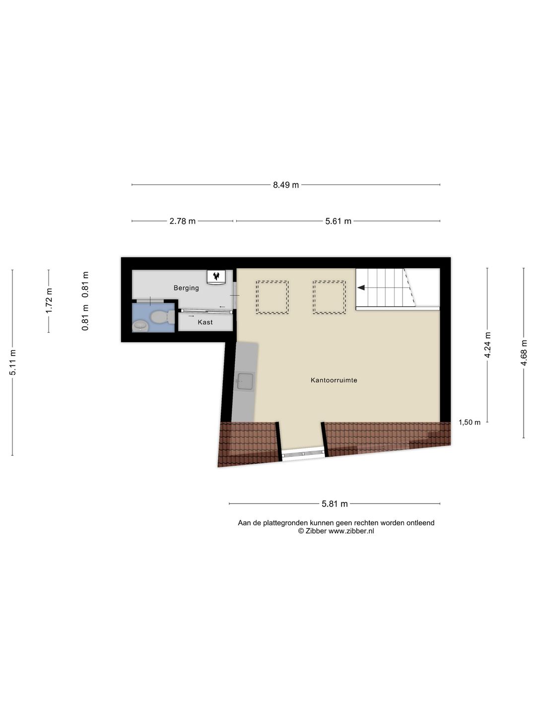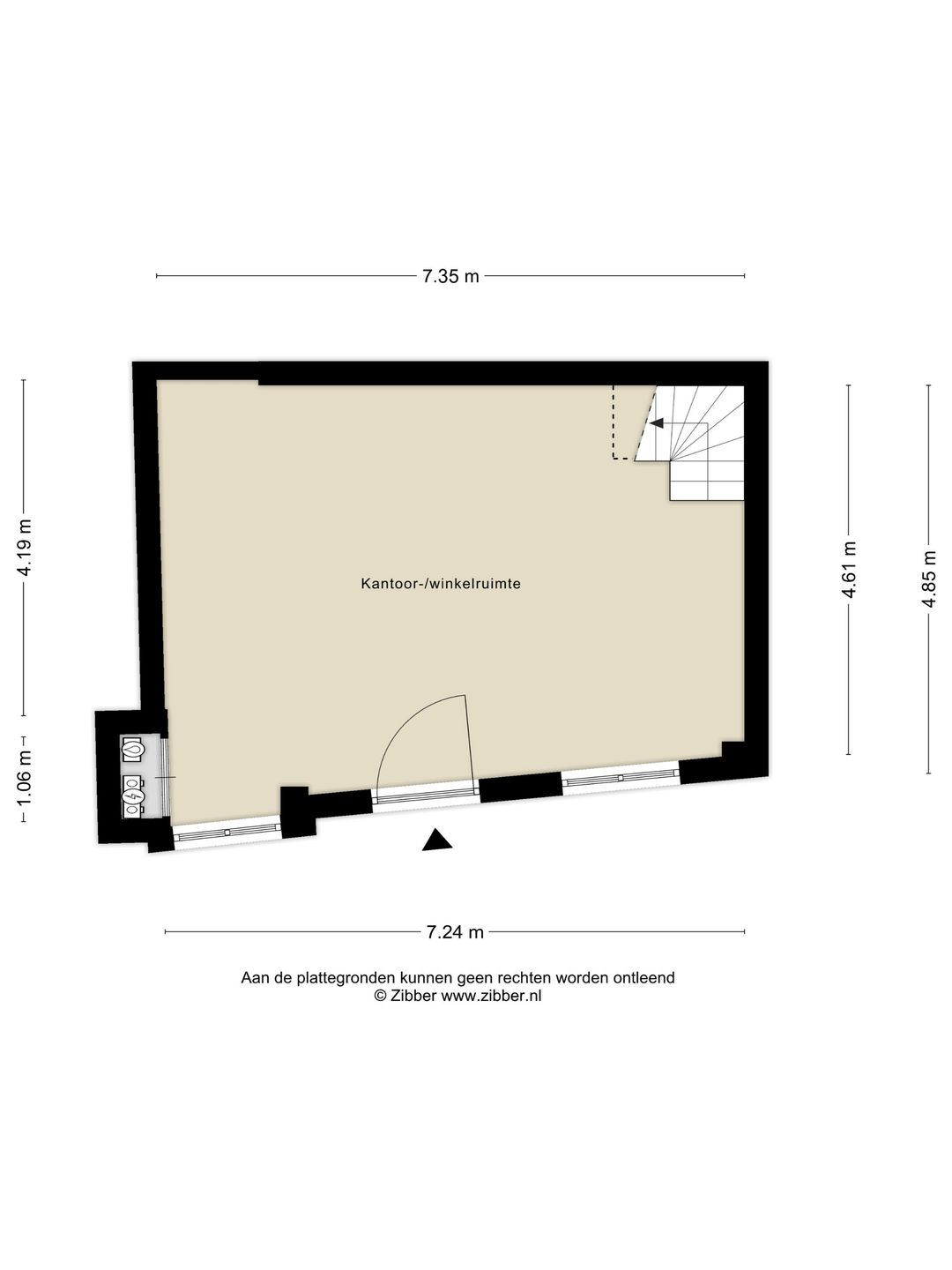 Het te huren oppervlak heeft een metrage van ca. 69 m² waarvan op de begane grond ca. 35 m² en eerste verdieping ca. 34 m². Het object is niet conform NEN 2580 gemeten.