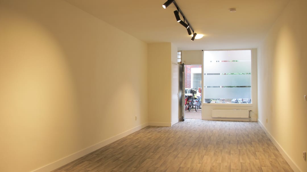 Fraaie, recent gerenoveerde kantoor-/ winkelruimte van 51 m² in de Staatsliedenbuurt, op loopafstand van de Westergasfabriek en het Westerpark.
