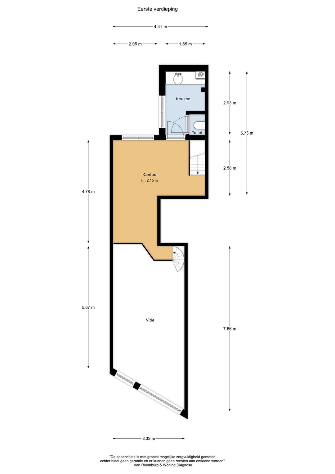 De winkel op de begane grond is circa 60 m².