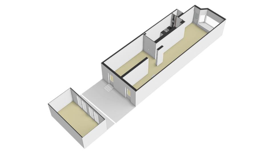 Deel huidige uitbouw dient gesloopt ( houtbouw van ±18m2) en afzonderlijk gebouw moet dan volgens gemeente- en bouwvoorschriften gerenoveerd worden ( hout- of steenbouw van ± 17m2).