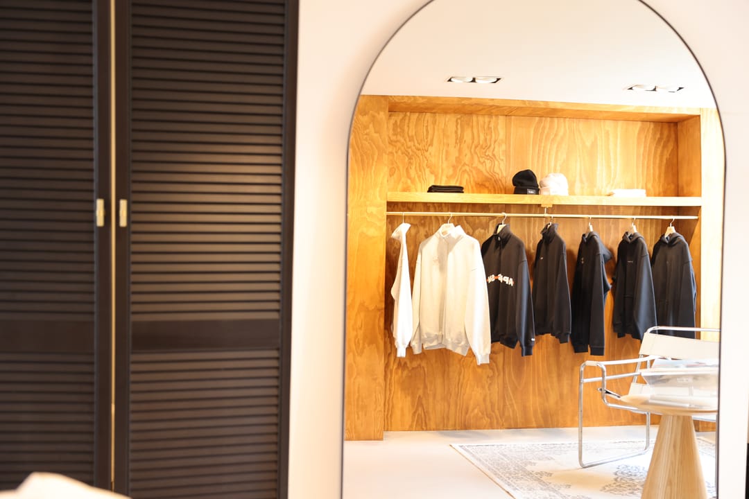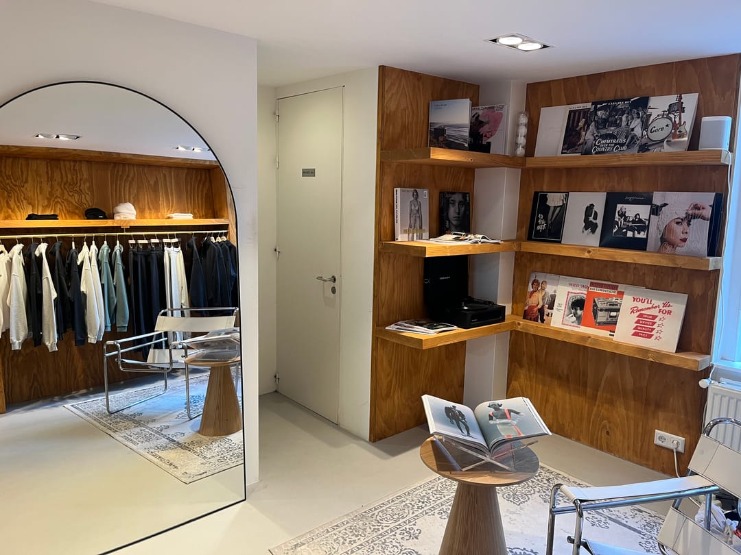 The store is fully fitted with cabinets, fitting rooms, lighting, and a counter/bar. Additional items such as a coffee machine, stools/chairs, mirrors, and a sofa are available for purchase. The space was completely renovated in 2023, including new paintwork throughout, installation of custom cabinetry and fitting