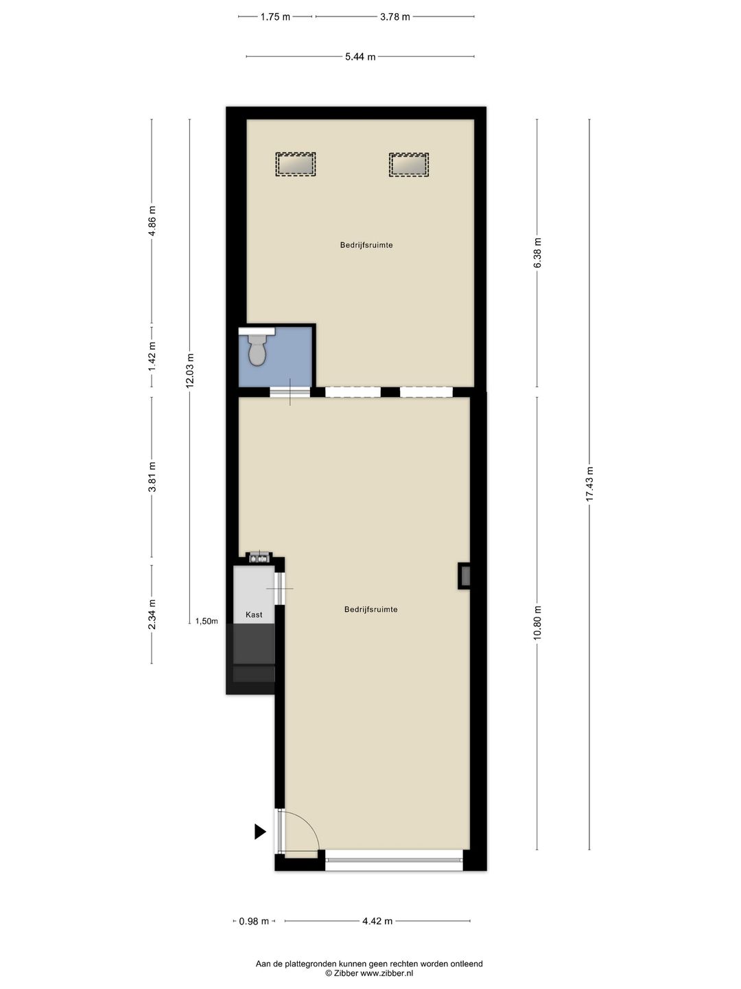 Bruto Vloer Oppervlakte (BVO) 105m² gelegen op de begane grond, waarvan 91m² Verhuurbare vloeroppervlakte (VVO).