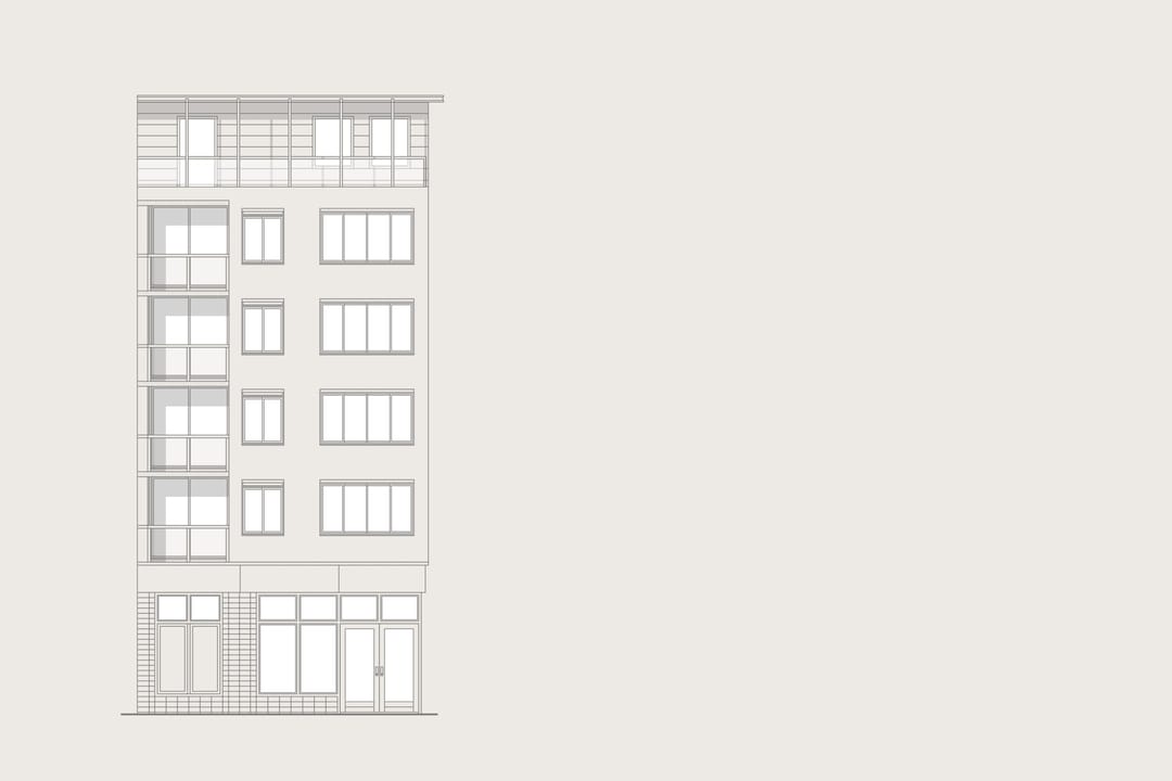 Het gebouw uit 1990 heeft een strakke gevel uitgevoerd met een lichte baksteen en functionele balkons. Boven de commerciële plint zijn appartementen gelegen. De winkelruimte op de begane grond kenmerkt zich door de hoekligging en het glanzen frontbreedte.