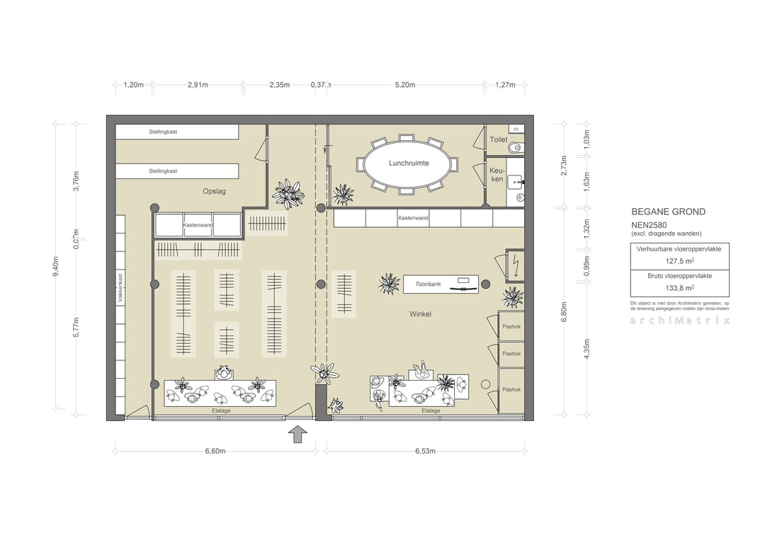 Dankzij de extra brede voorgevel van circa 13 meter en de grote raampartijen geniet de ruimte van optimale zichtbaarheid. De hoge plafonds en royale daglichttoetreding versterken het ruimtelijke gevoel. Daarnaast beschikt de ruimte over twee entrees: een brede hoofd entree en een aparte zij-ingang.