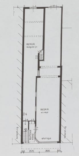 De naast de winkel aanwezige loodsachtige ruimte is deels in gebruik bij de bovenbuurman.