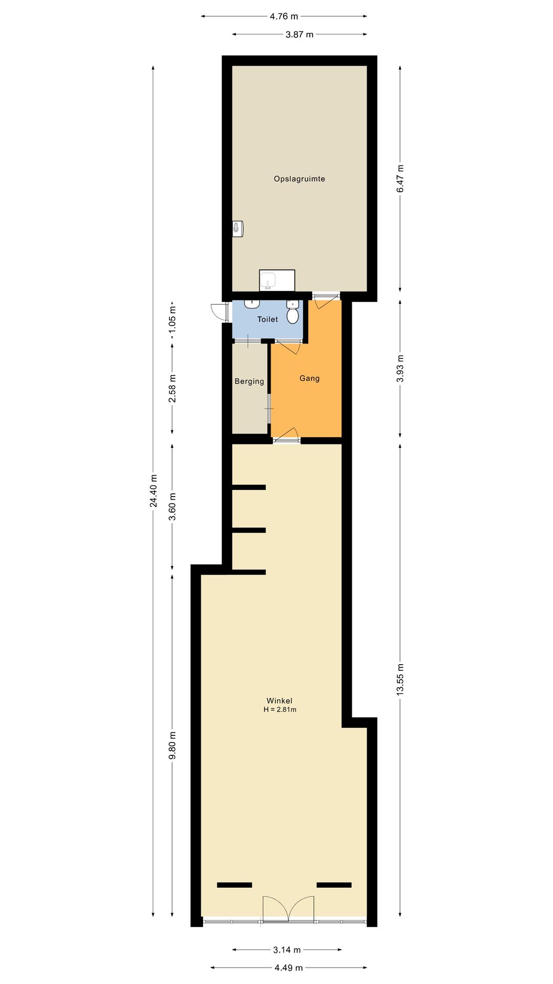 De winkelruimte heeft een frontbreedte van ca. 5 meter en een fraaie glazen pui met goede attentiewaarde. De ruimte is als volgt ingedeeld: Winkelruimte, gang, berging en toilet, magazijn/-kantoorruimte.