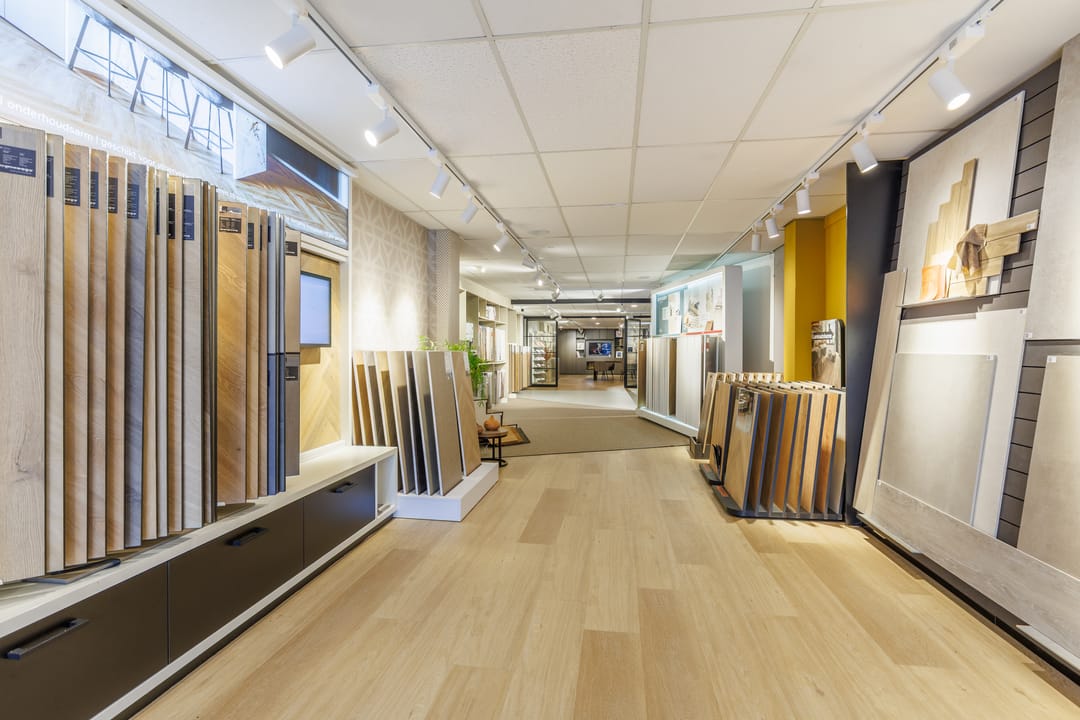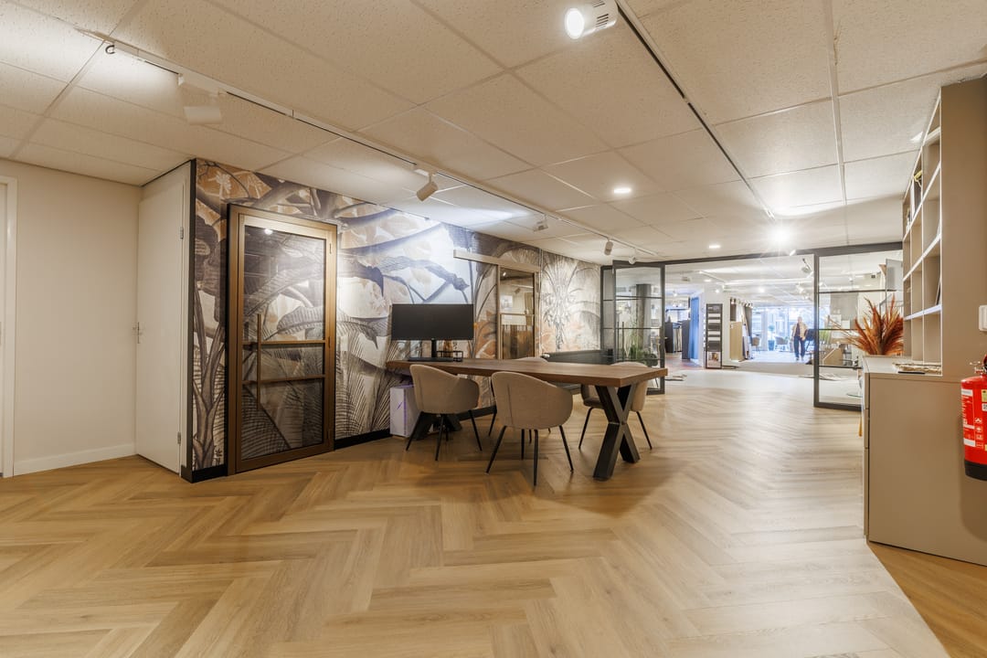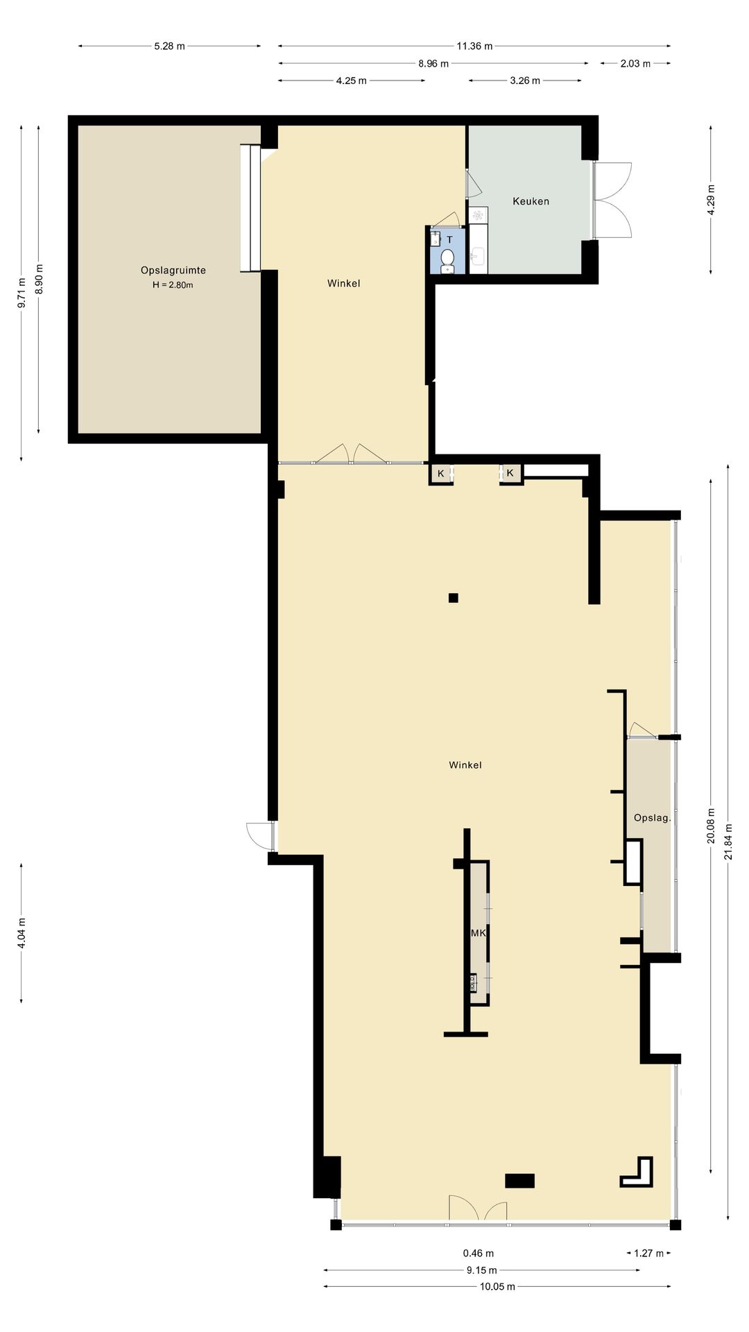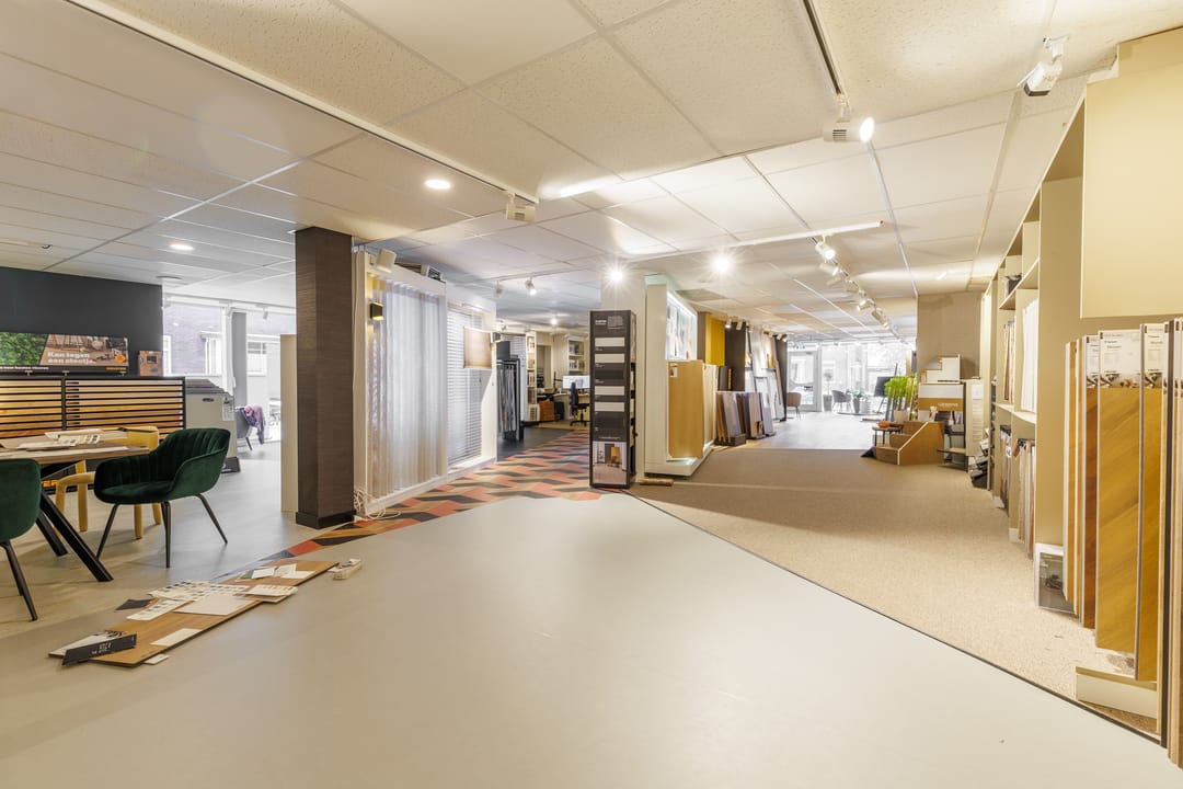 Indeling; winkel/showroom, magazijntje/expeditie ruimte, pantry en toilet.