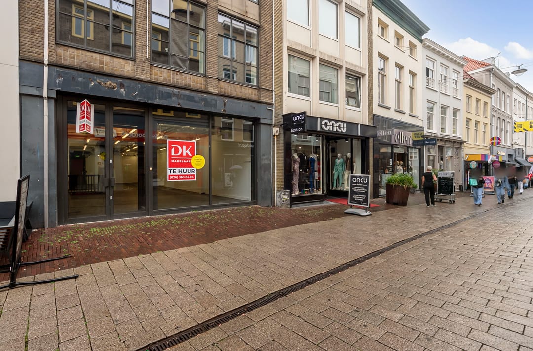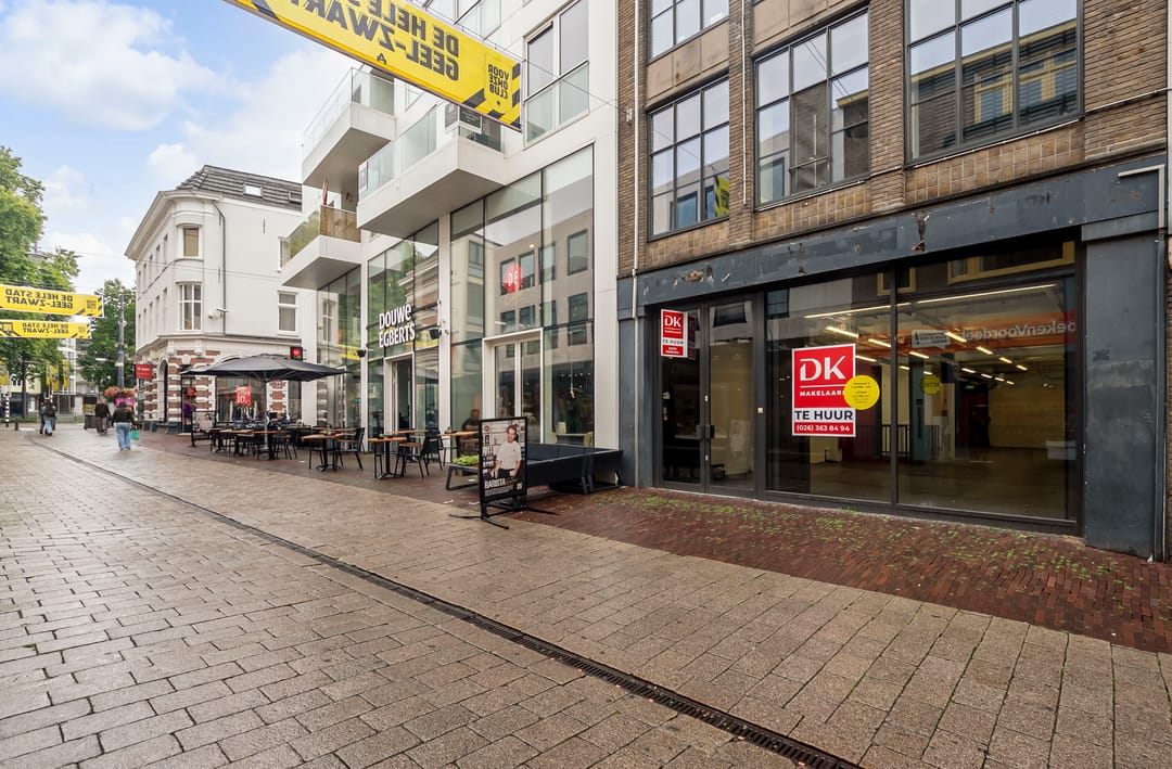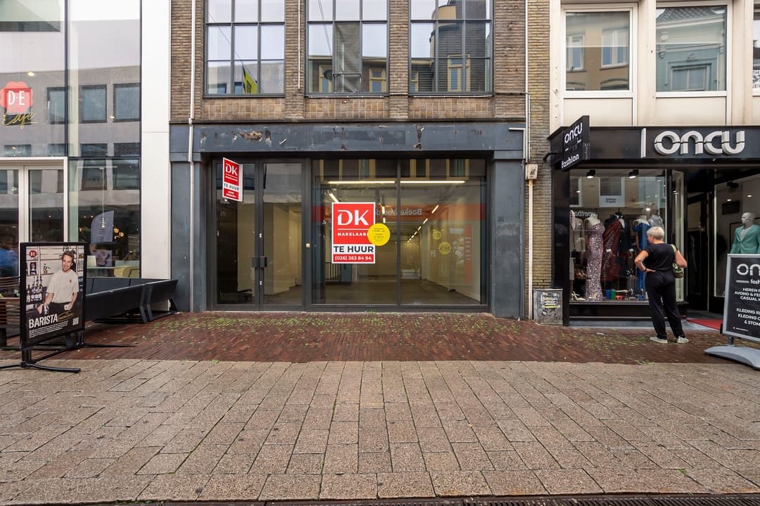 In een van de hoofdwinkelstraten van het winkelgebied van Arnhem ‘te huur’ winkelpand.