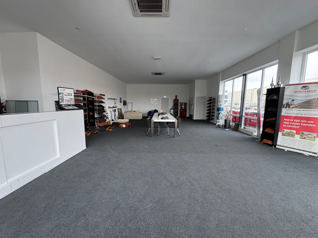 De ruimte heeft een oppervlakte van circa 150 m² en is geschikt voor diverse zakelijke doeleinden, zoals kantoor, showroom of lichte dienstverlening.