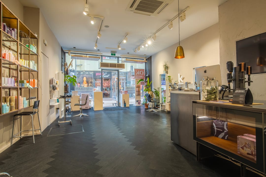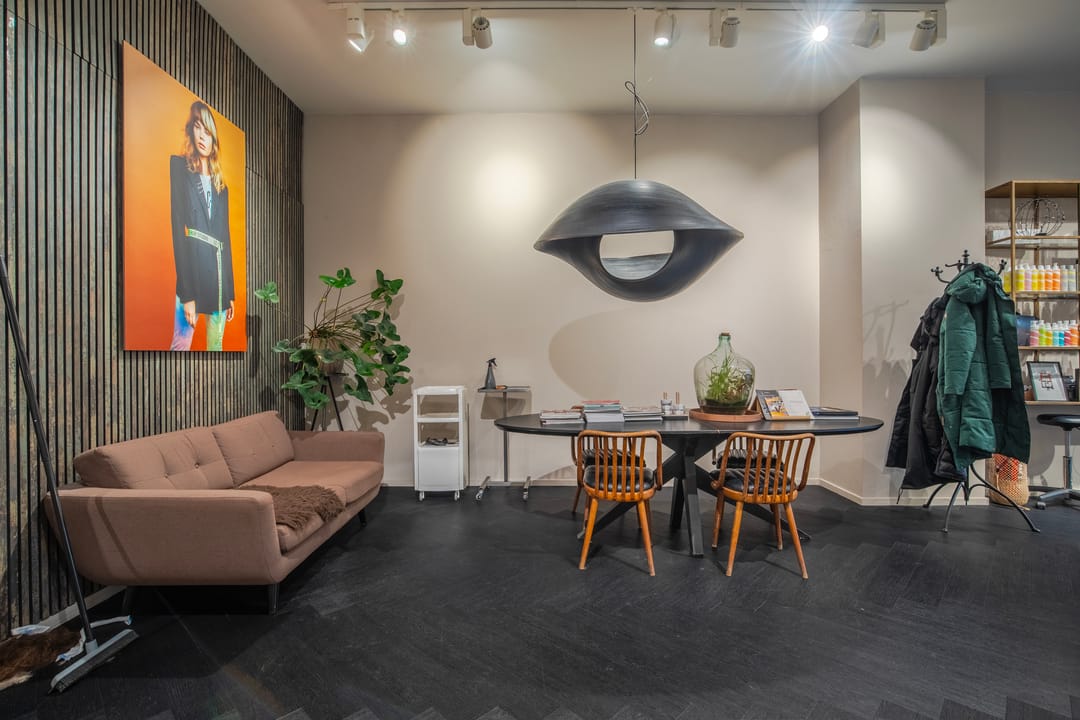 De brede en hoge winkelpui zorgt ervoor dat de winkel opvalt en binnen een ruimtelijke en lichte uitstraling heeft.