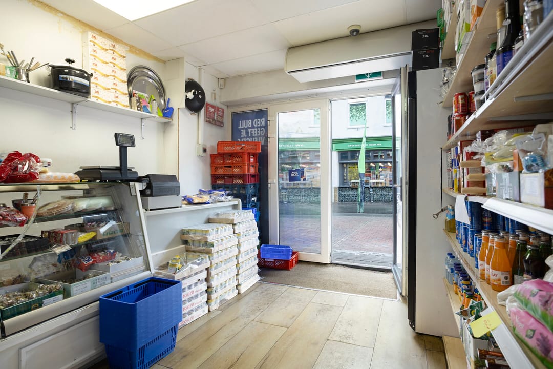 De winkelruimte op de begane grond beschikt over een vrije indeling. De kelderruimte is geschikt voor opslag. Aan de achterzijde bevindt zich een schuur van circa 13 m².