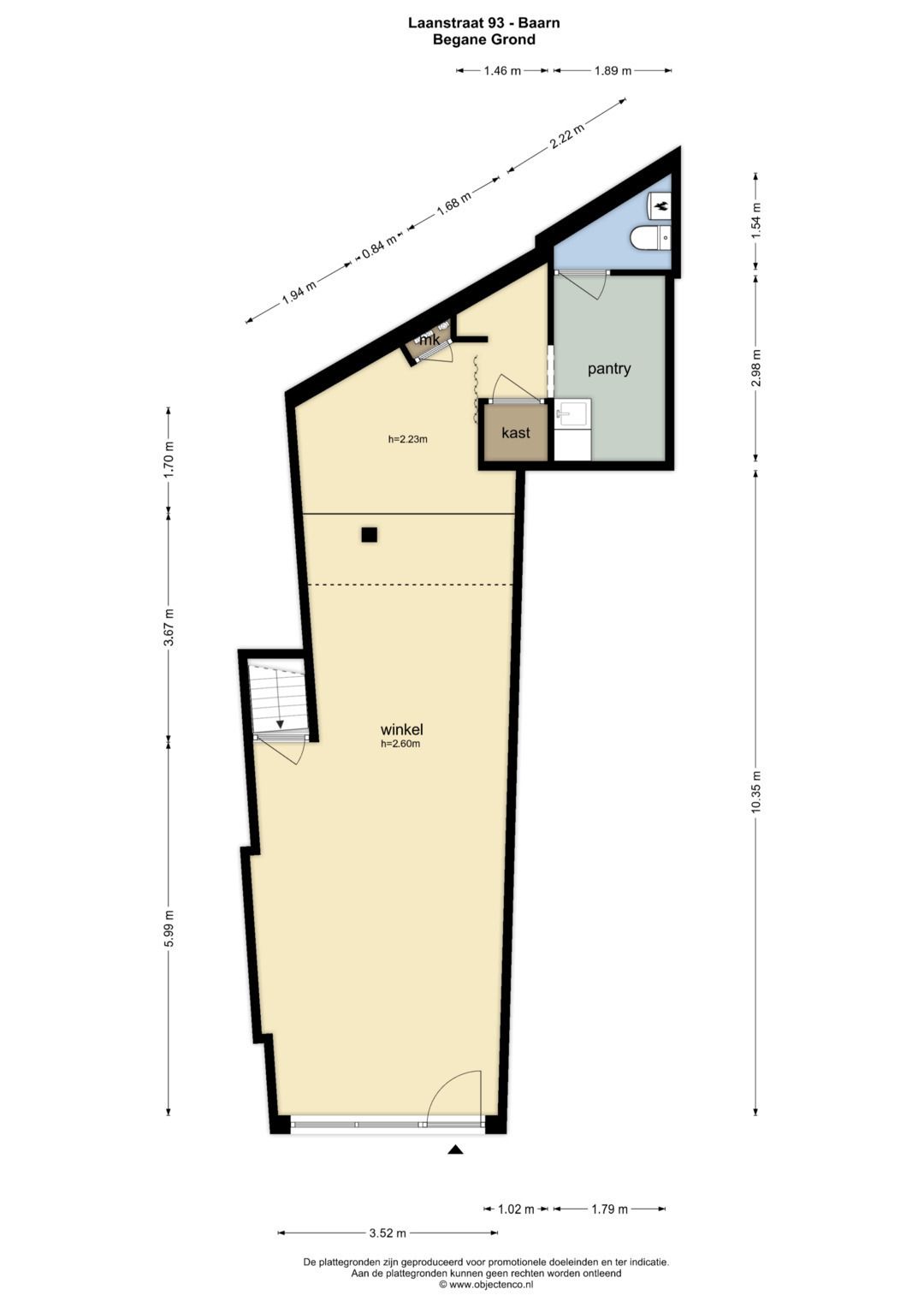 De frontbreedte bedraagt circa 3,52 meter. De winkelpui is in 2023 volledig gerenoveerd en verkeert in uitstekende staat.