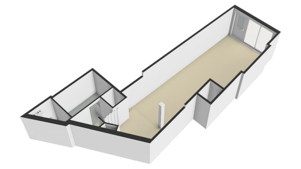 - Begane grond: circa 45 m² winkelruimte en circa 8 m² toilet-, pantry- en bergruimte.