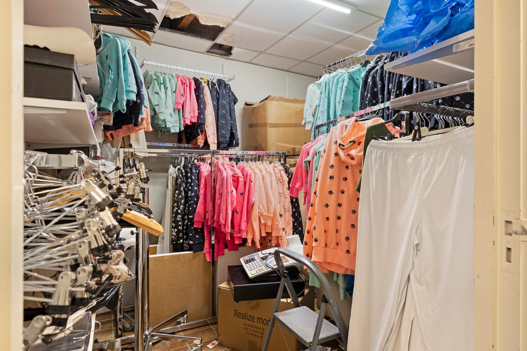 De winkelruimte is praktisch ingedeeld en beschikt aan de achterzijde over een magazijnruimte, een dagverblijf met pantry en