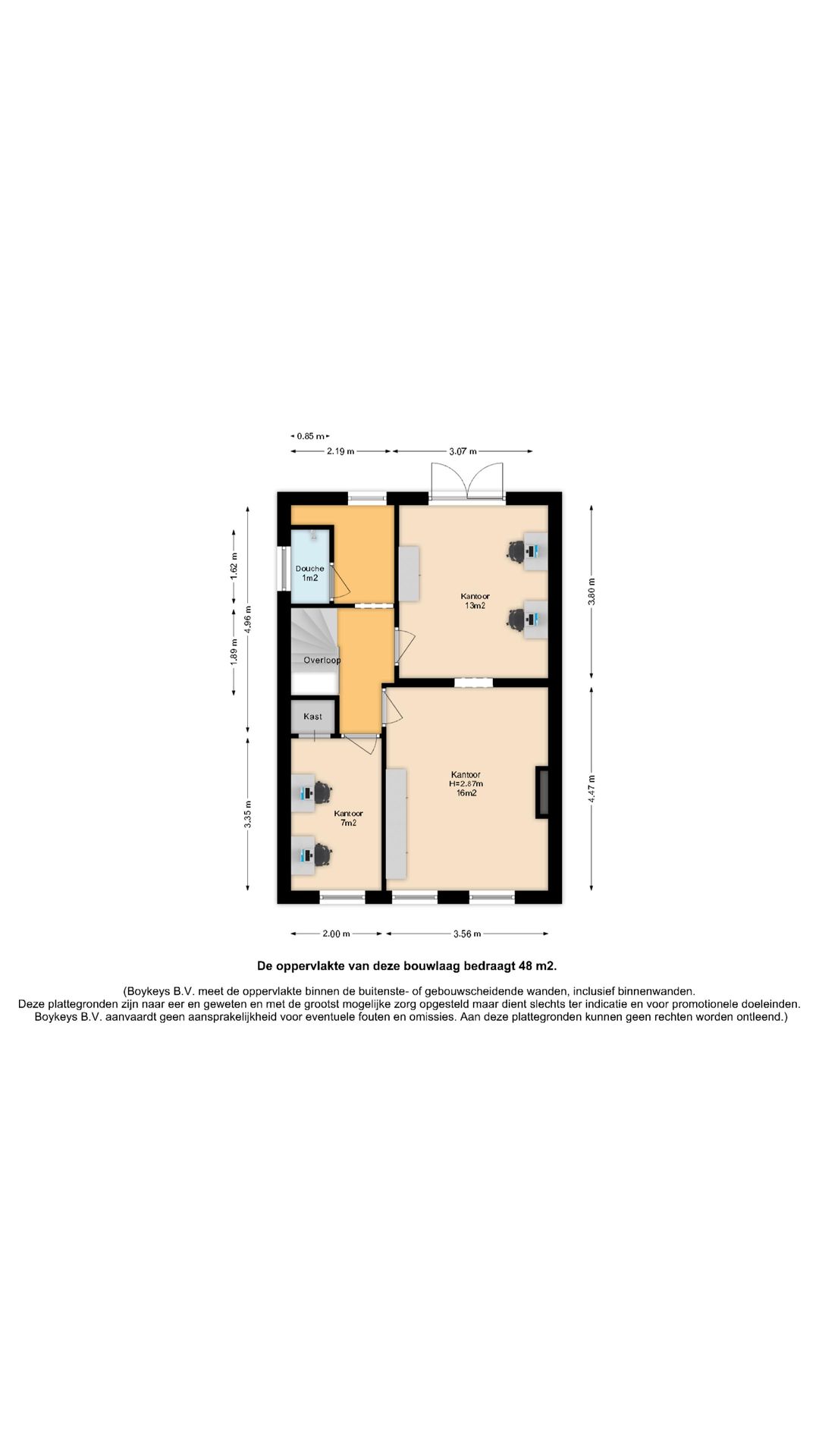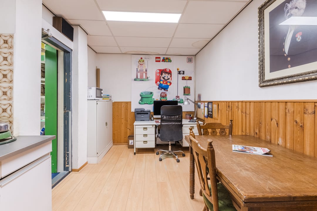 De eerste verdieping – circa 55 m² groot – is op dit moment ingericht als ondersteunende ruimte, bijvoorbeeld voor kantoor, opslag of personeel. Maar met wat creativiteit is deze verdieping ook uitstekend geschikt te maken als woonruimte of als verlengstuk van je commerciële activiteiten.