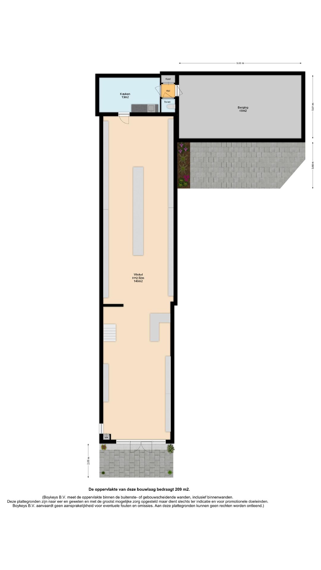 Circa 135 m² begane grond, circa 55 m² eerste verdieping, circa 45 m² tweede verdieping
