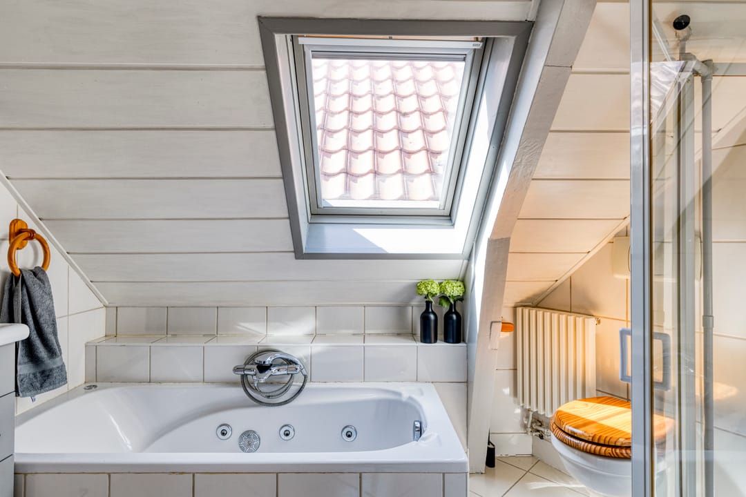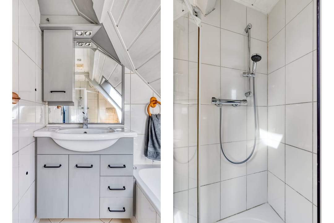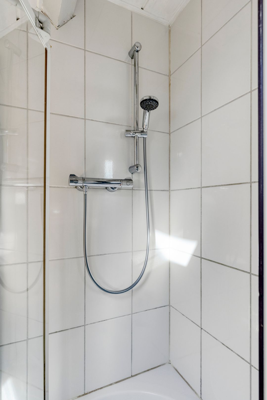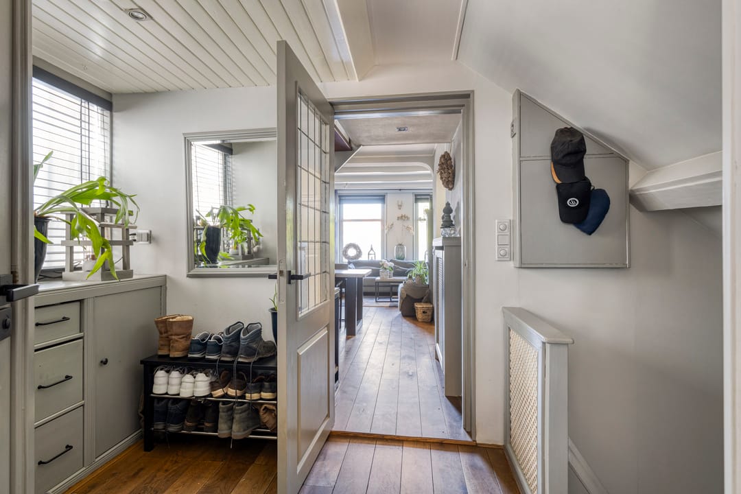De tweede verdieping biedt een ruime slaapkamer met wederom dat leuke uitzicht, zelfs richting de jachthaven. Een fijne plek om de dag rustig te beginnen. De badkamer is compleet en comfortabel, en er is nog een extra kamer aanwezig – handig als logeerkamer of bijvoorbeeld kleedruimte.
