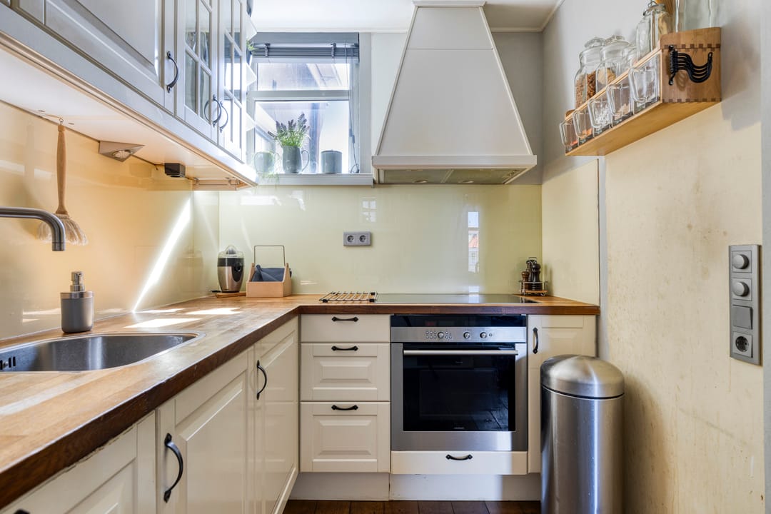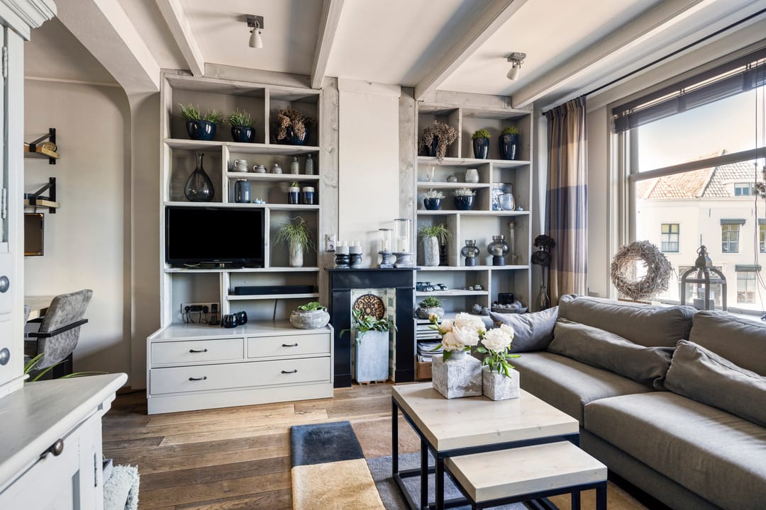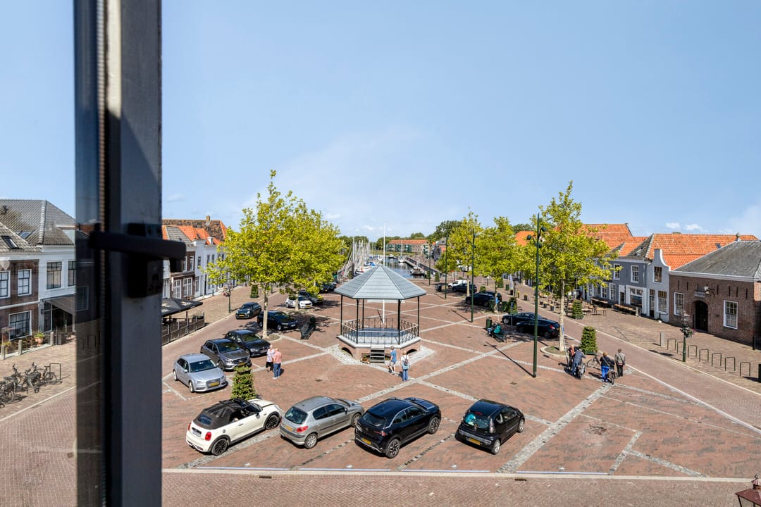 Op de eerste verdieping bevindt zich nu het charmante woongedeelte. Aan de voorzijde geniet u van een lichte woonkamer met uitzicht op de markt – altijd iets te zien, zonder dat het druk voelt. De halfopen keuken bij de eethoek is netjes en compleet ingericht, perfect om na een werkdag even rustig te koken en te ontspannen. Daarnaast is er nog een extra kamer die zich uitstekend leent als bijvoorbeeld slaapkamer, thuiswerkplek, atelier of hobbyruimte.