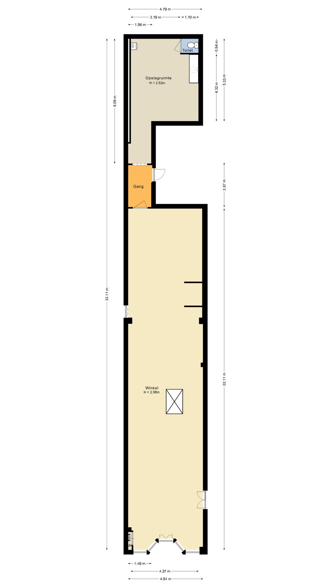 - Indeling: Ruime winkelruimte met achtergelegen opslag en toilet