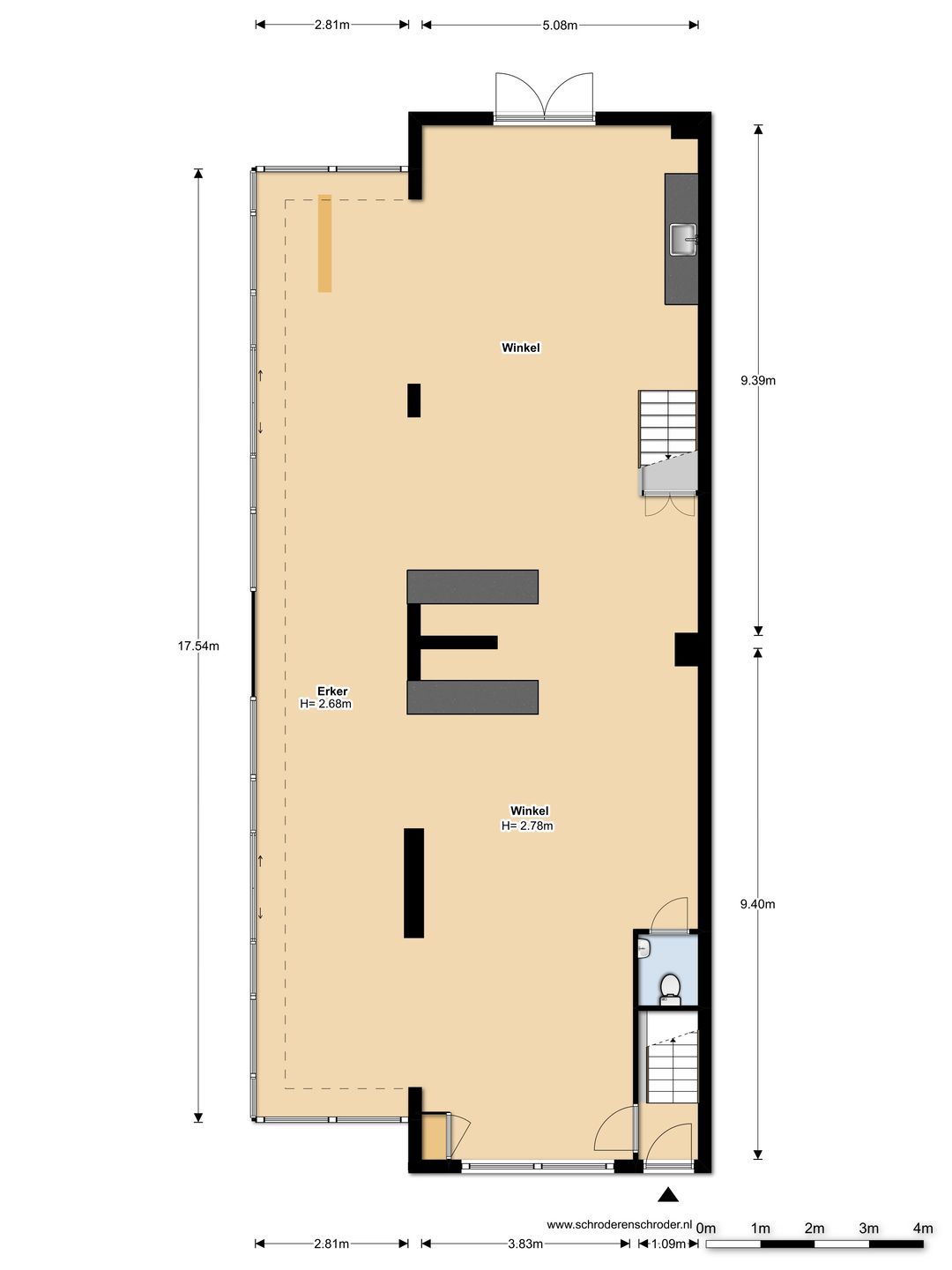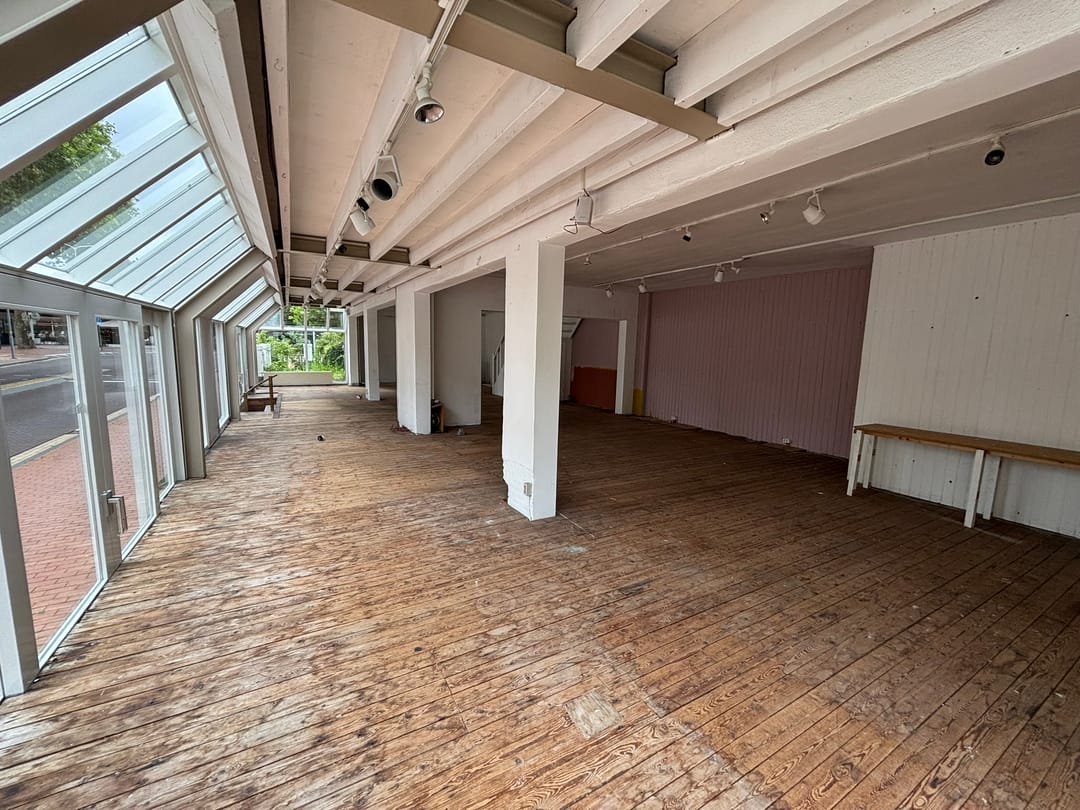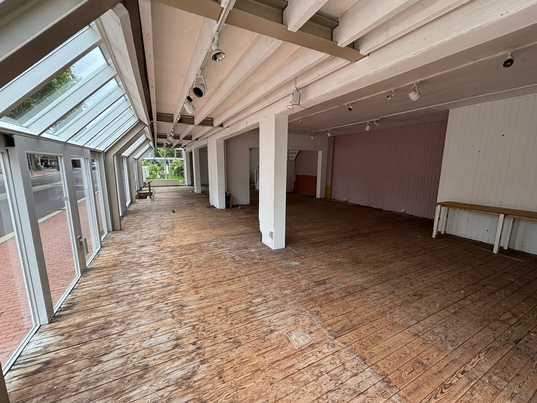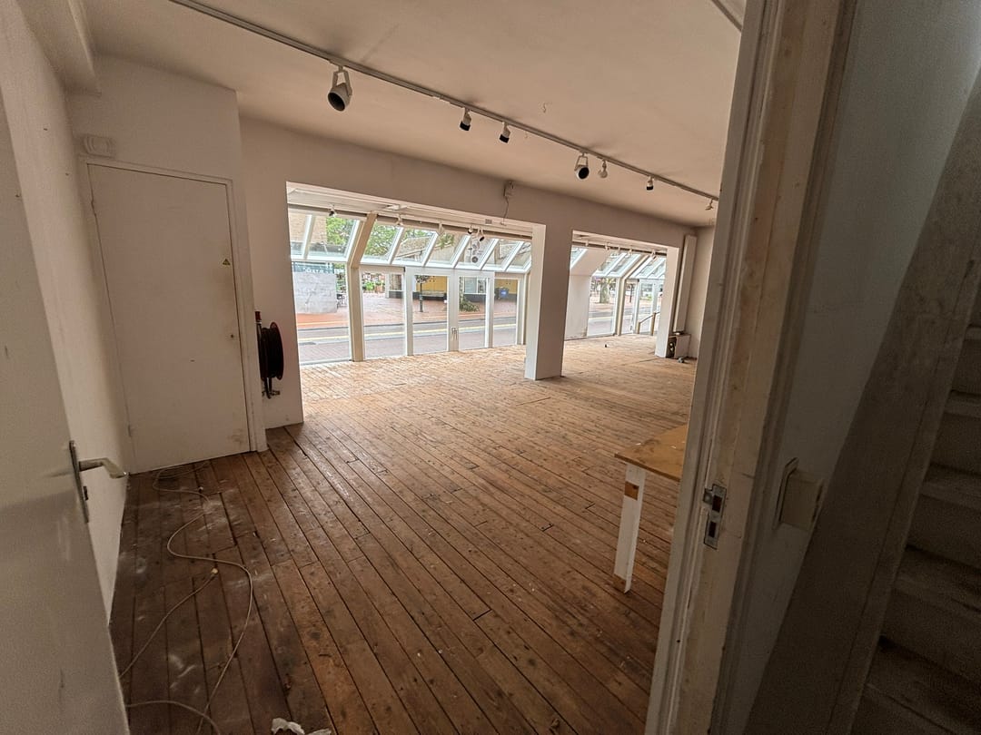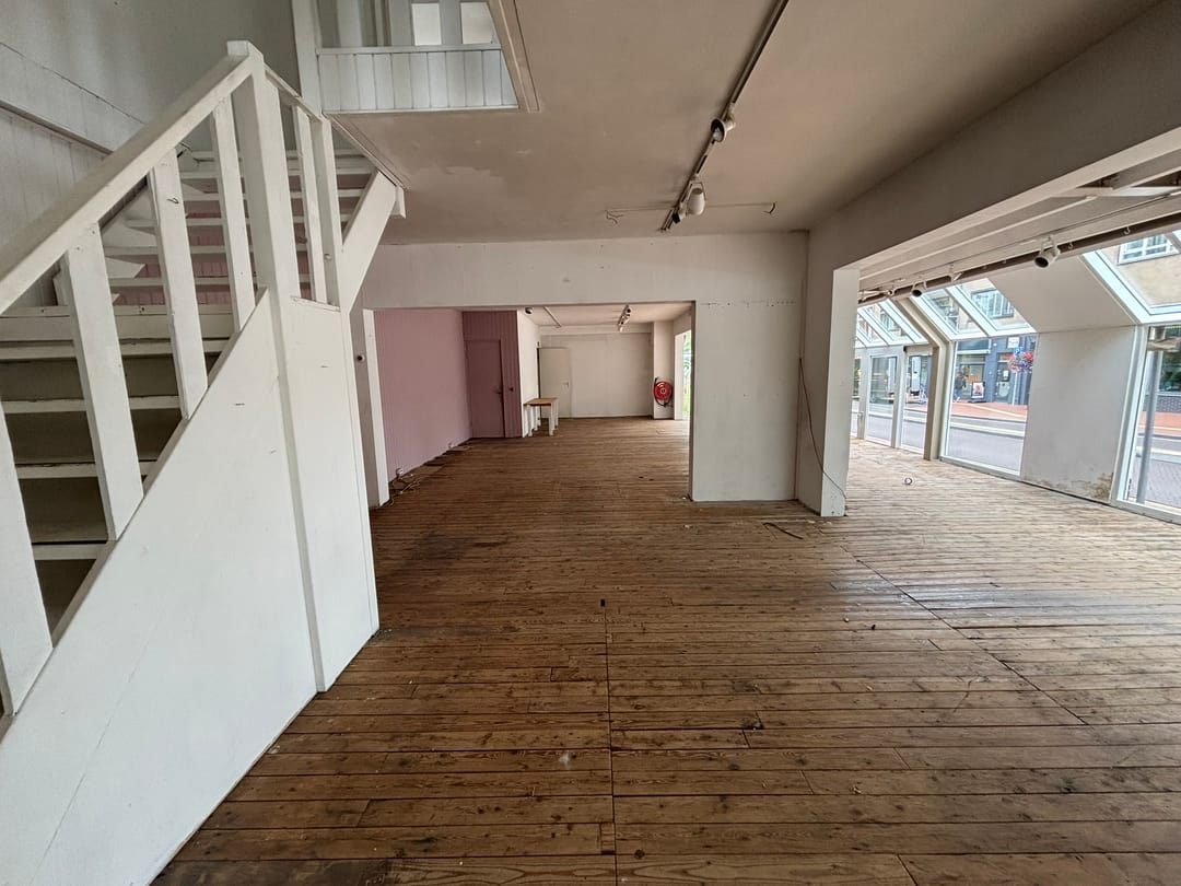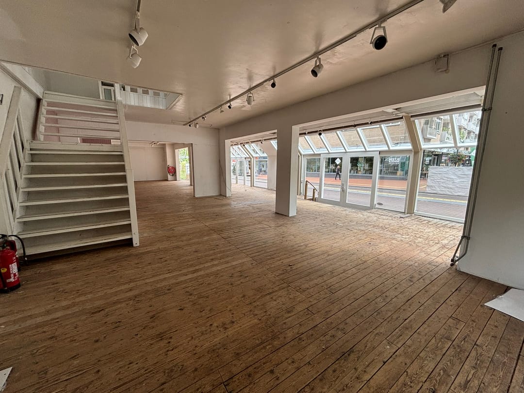 De winkelruimte gelegen op de begane grond omvat circa 143 m² verkoopruimte (inclusief serre).