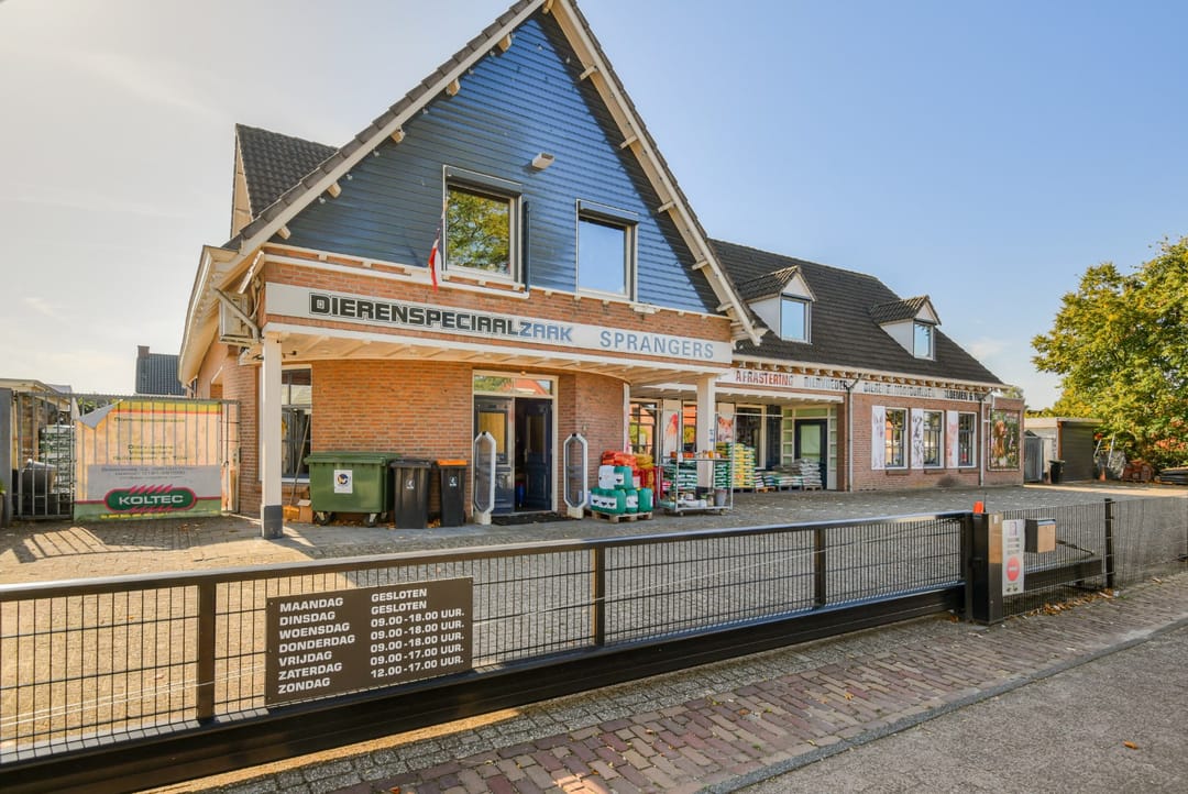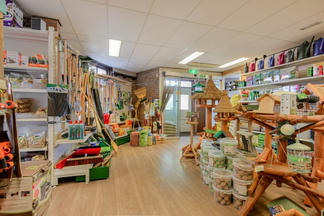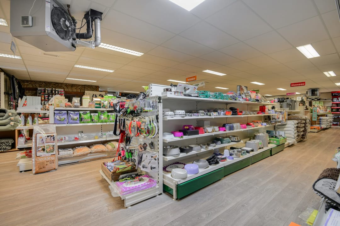 Door de dubbele deuren aan de voorzijde van het pand kom je in de hal. Hierachter is een automatische schuifdeur, zodat er een luchtsluis is tussen de buitenlucht en de commerciële ruimte. Vanuit hier is de commerciële ruimte te bereiken welke momenteel als dierenspeciaalzaak is ingericht. Het plafond is grotendeels voorzien van een verlaagd systeemplafond met lichtbakken. De vloer is een combinatie van laminaat en tegels. De ruimte wordt verwarmd met gasgestookte luchtverwarmers. Er zijn diverse wandcontactdozen beschikbaar.