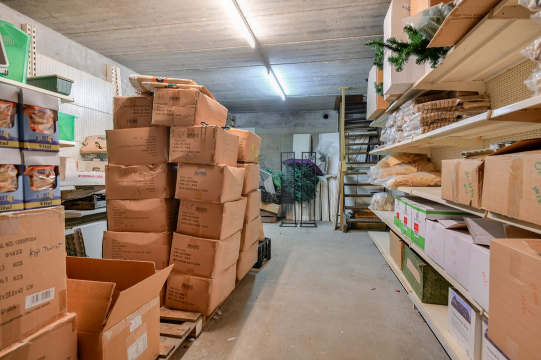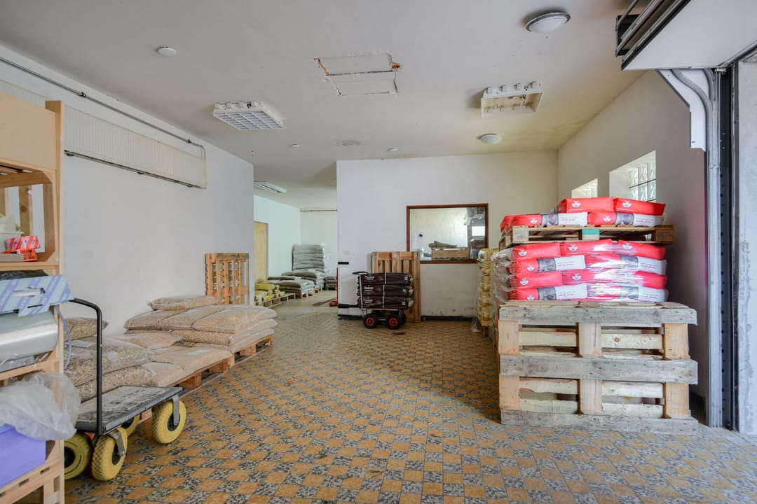 Het rechtergedeelte van het pand is hoofdzakelijk ingericht als magazijn/opslagruimte. Hier is ook een extra toilet met voorportaal. In het magazijn is er een grote sectionaaldeur voorzien van kunststof lamellen. De vloer is volledig betegeld.